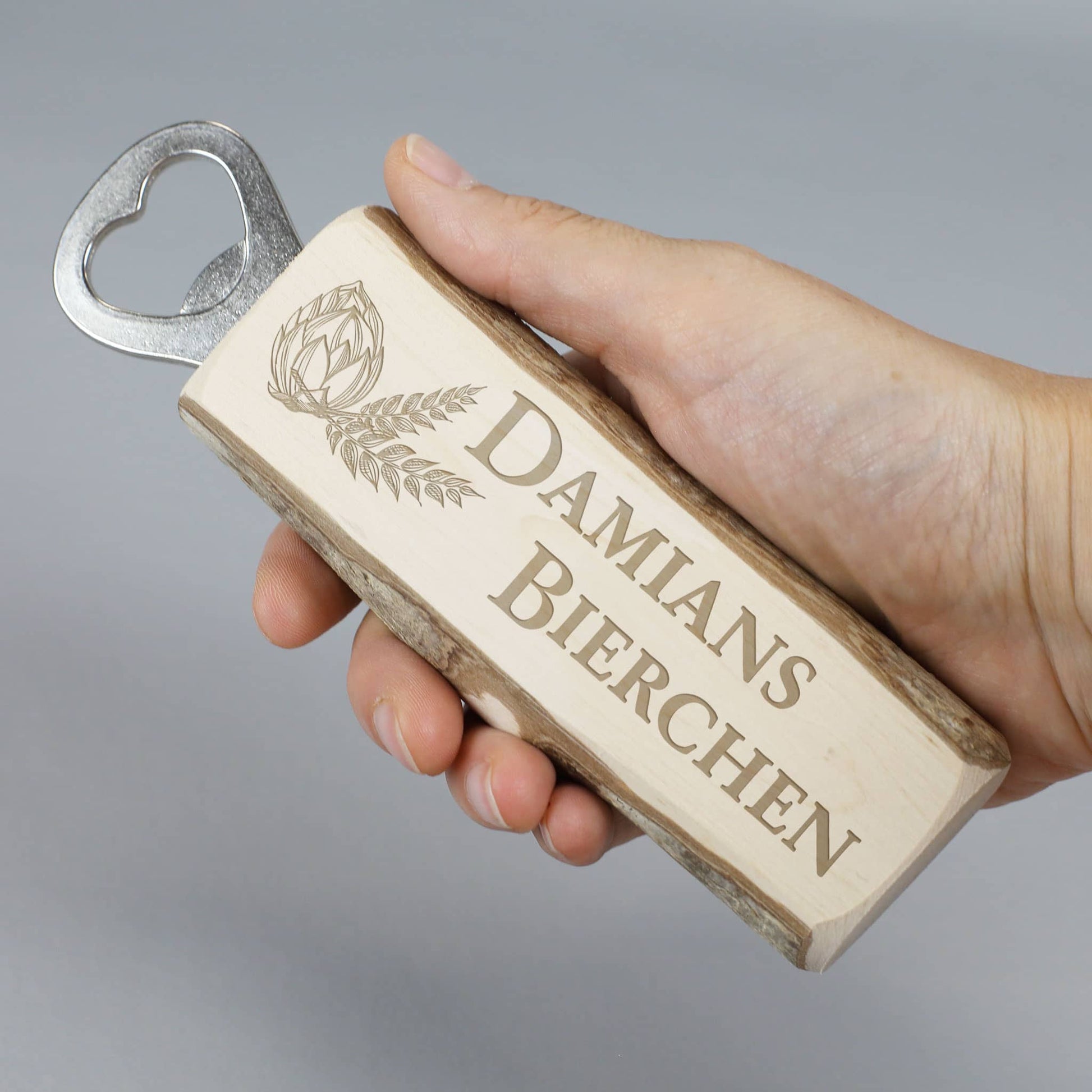 - Material: Naturholz mit Rinde, Edelstahlöffner