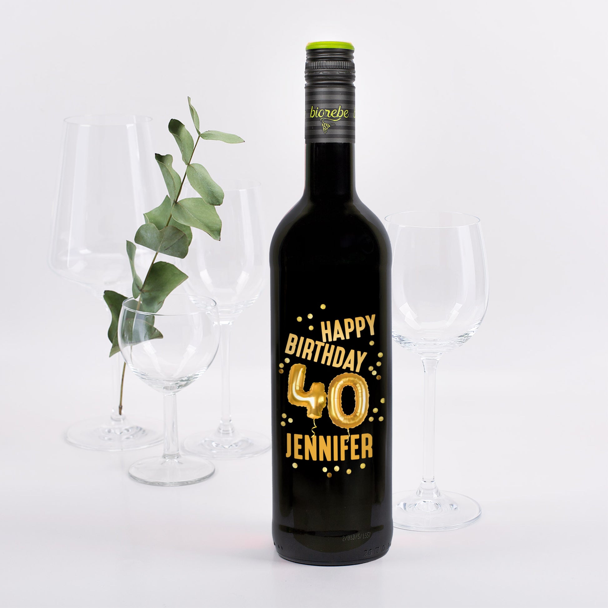 Biorebe Wein zum 40. Geburtstag personalisiert mit Name | Luftballon & Konfetti Design