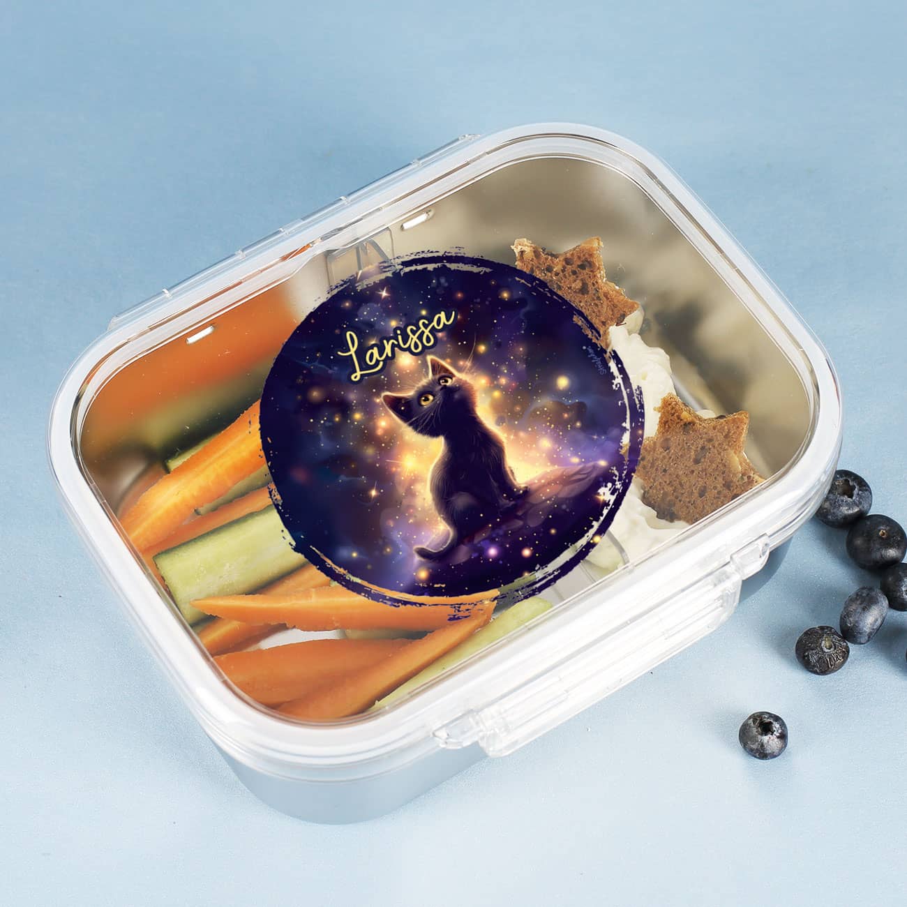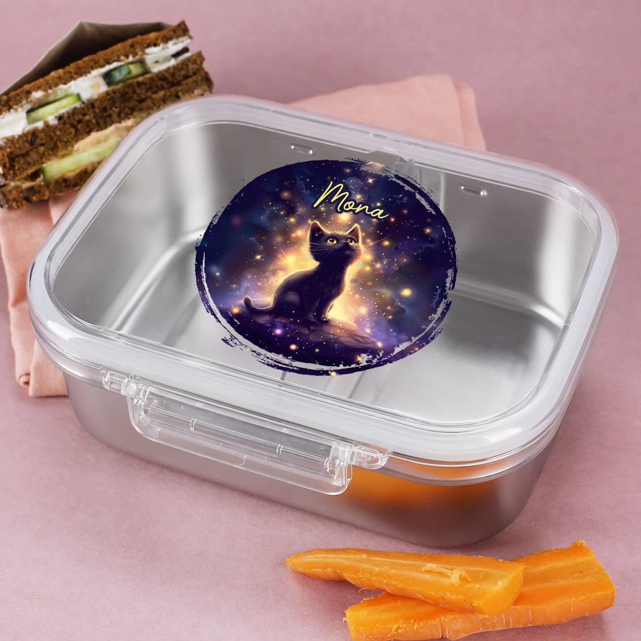 Brotdose mit magischen Katzenmotiv und Name personalisiert