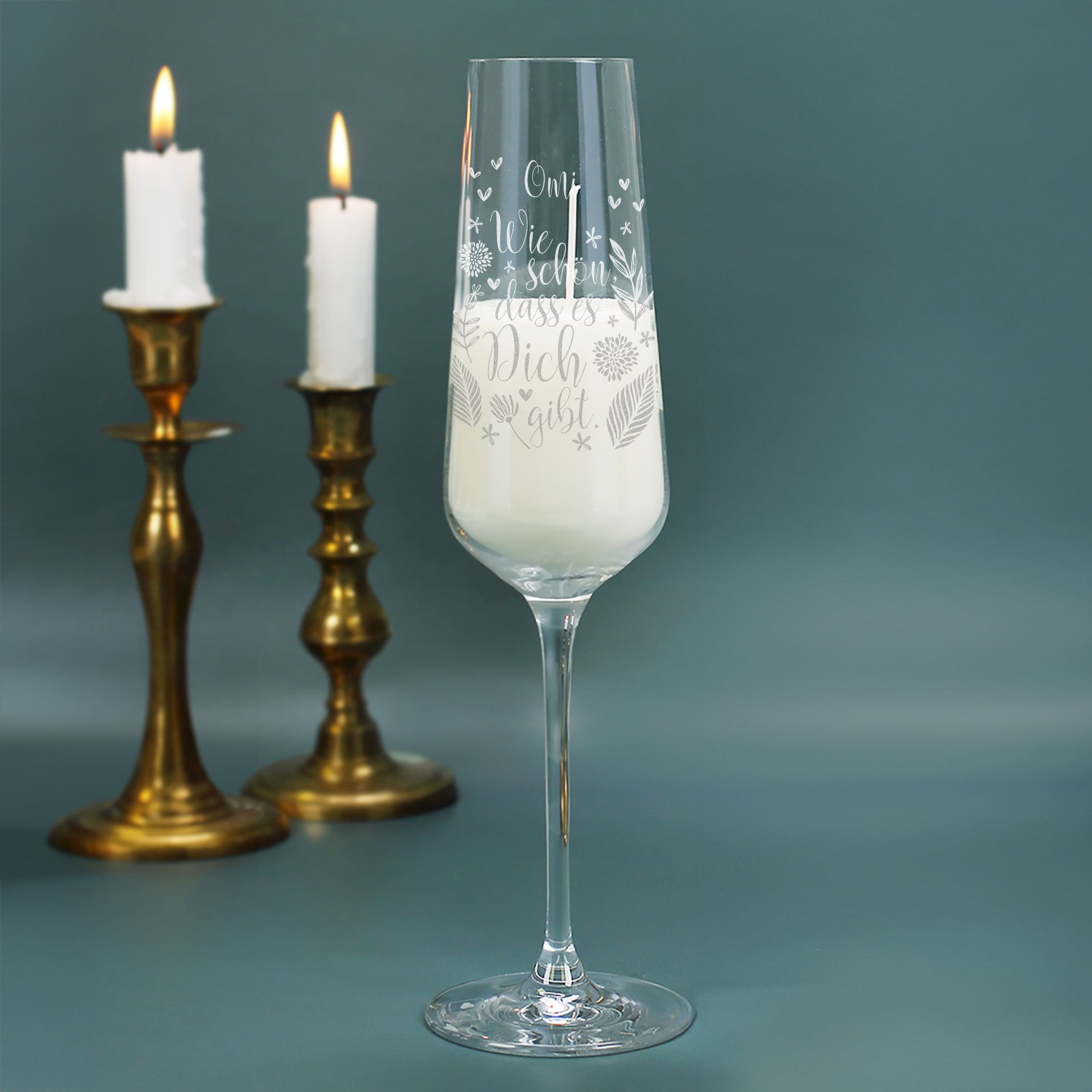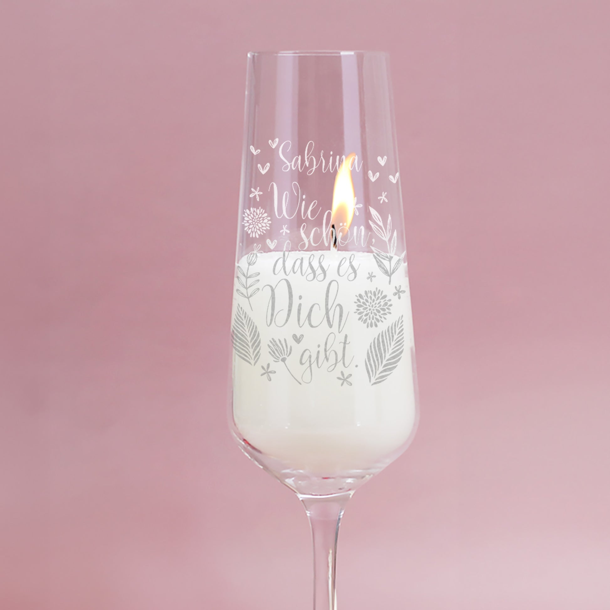Personalisierte Duftkerze im Sektglas – „Wie schön, dass es dich gibt“