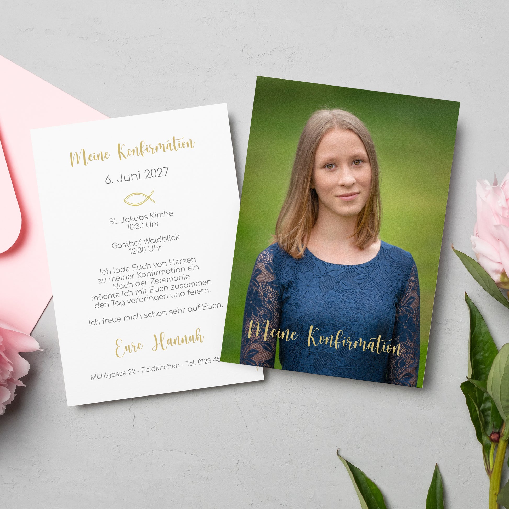 Personalisierte Einladungskarte für Konfirmation, Kommunion oder Taufe – mit Foto