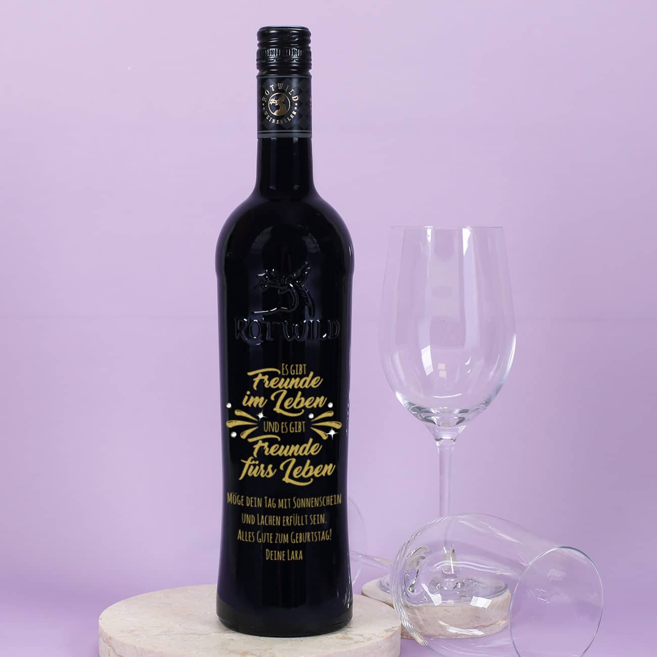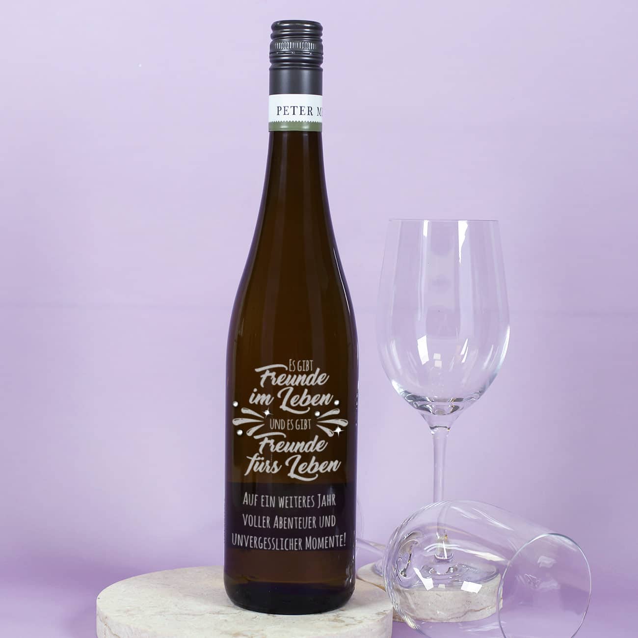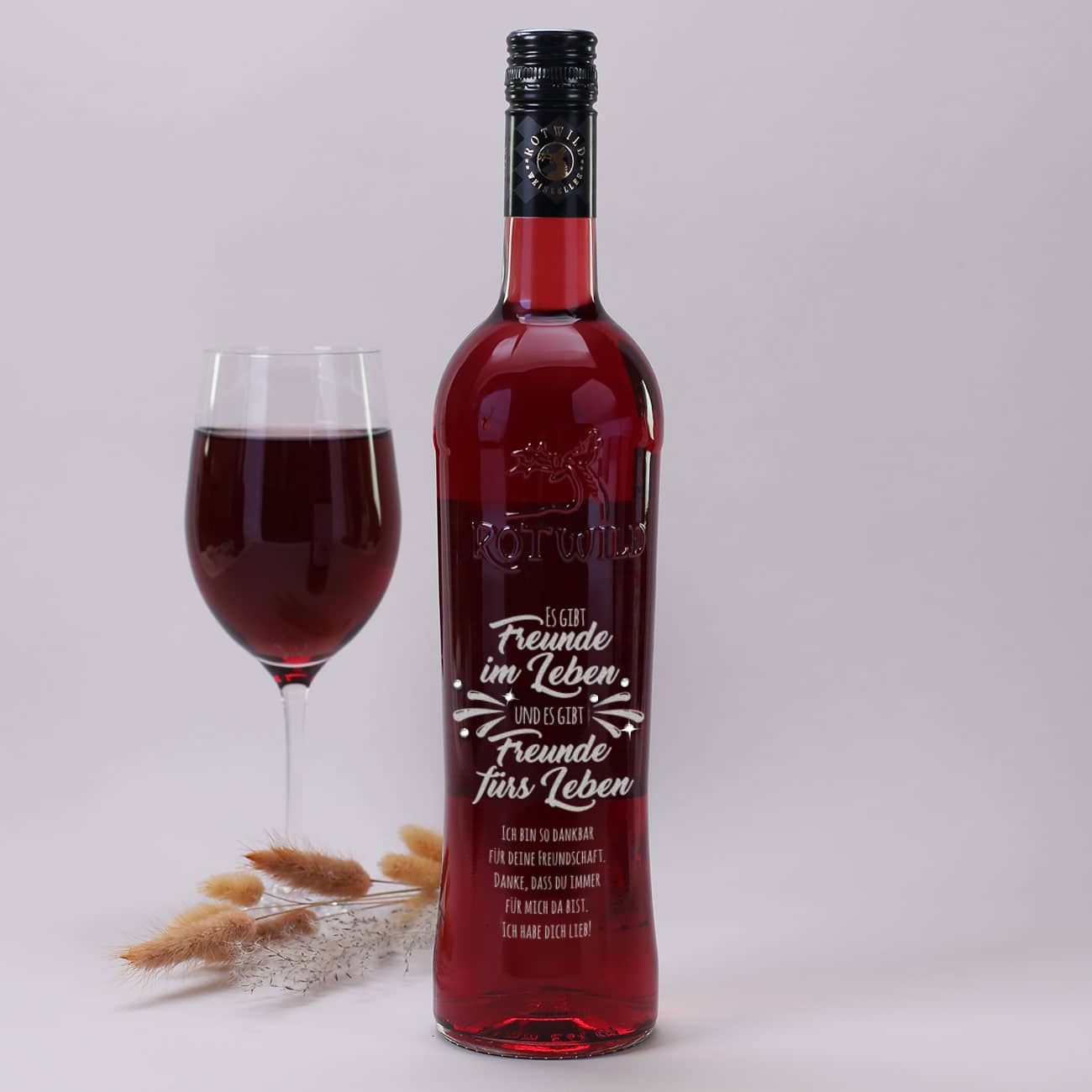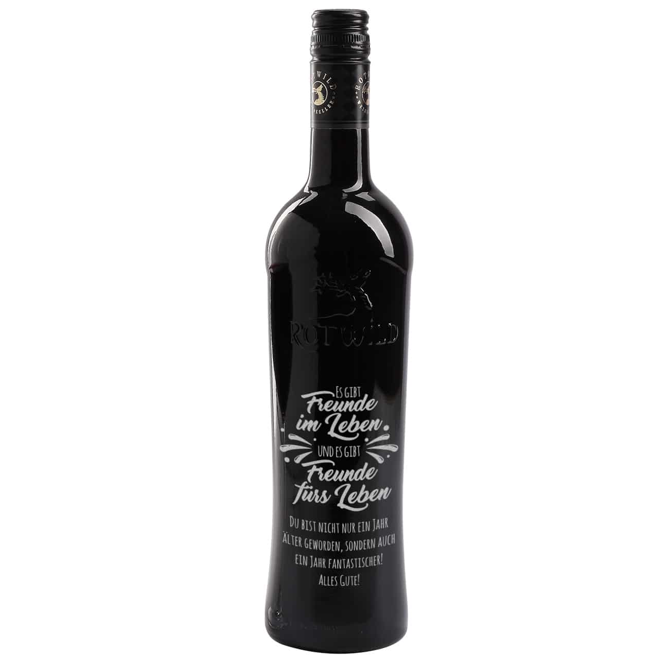 Es gibt Freunde im Leben und es gibt Freunde fürs Leben - Gravierte Weinflasche mit Wunschtext