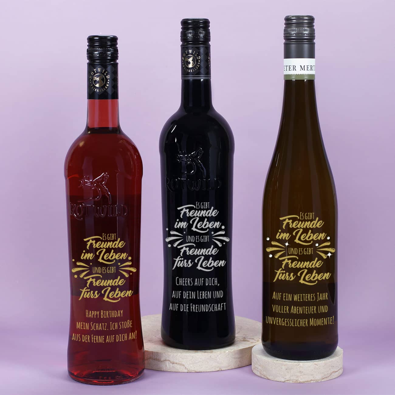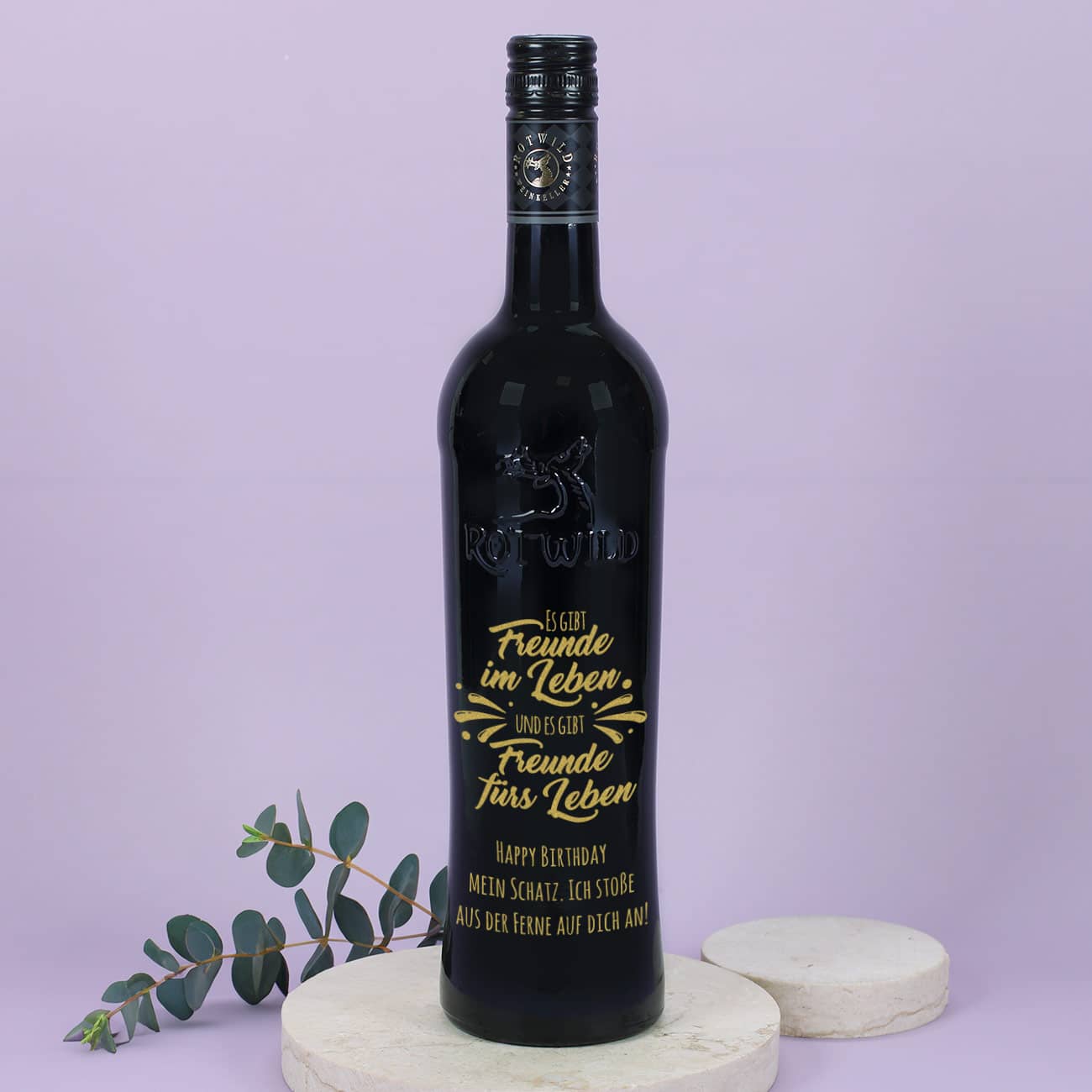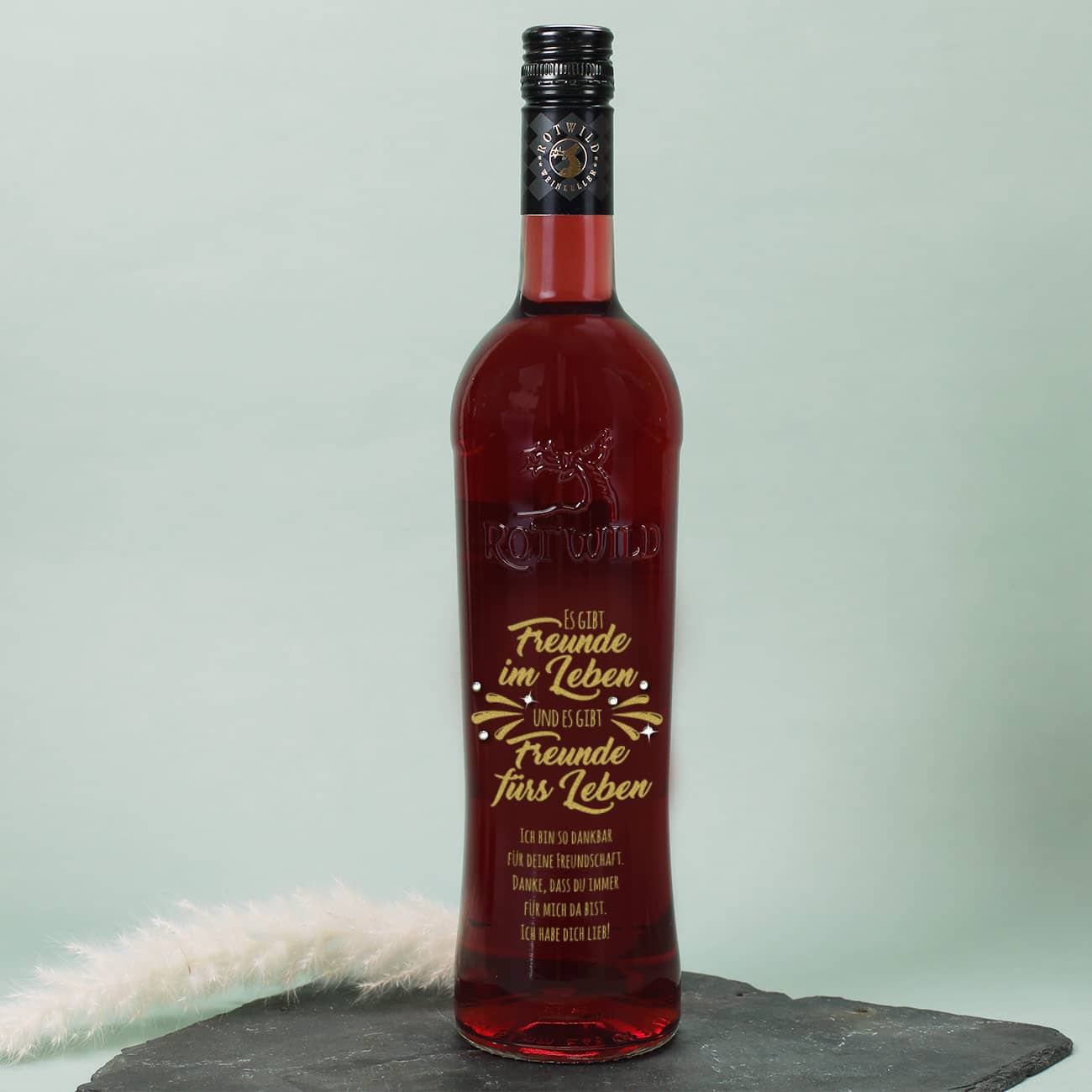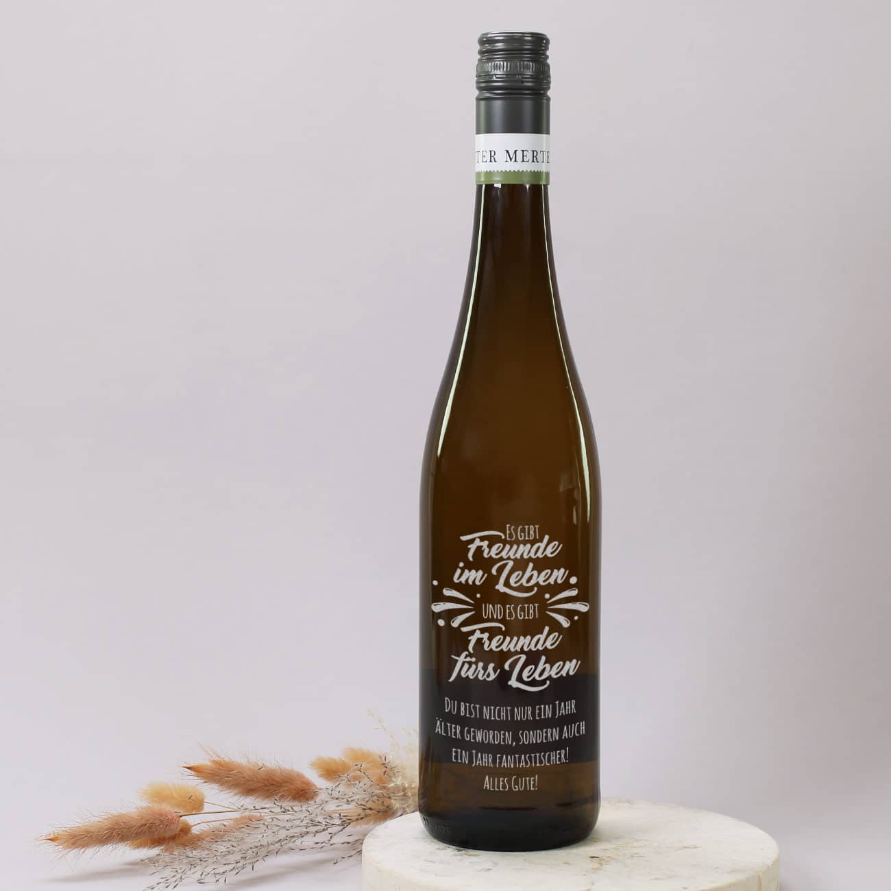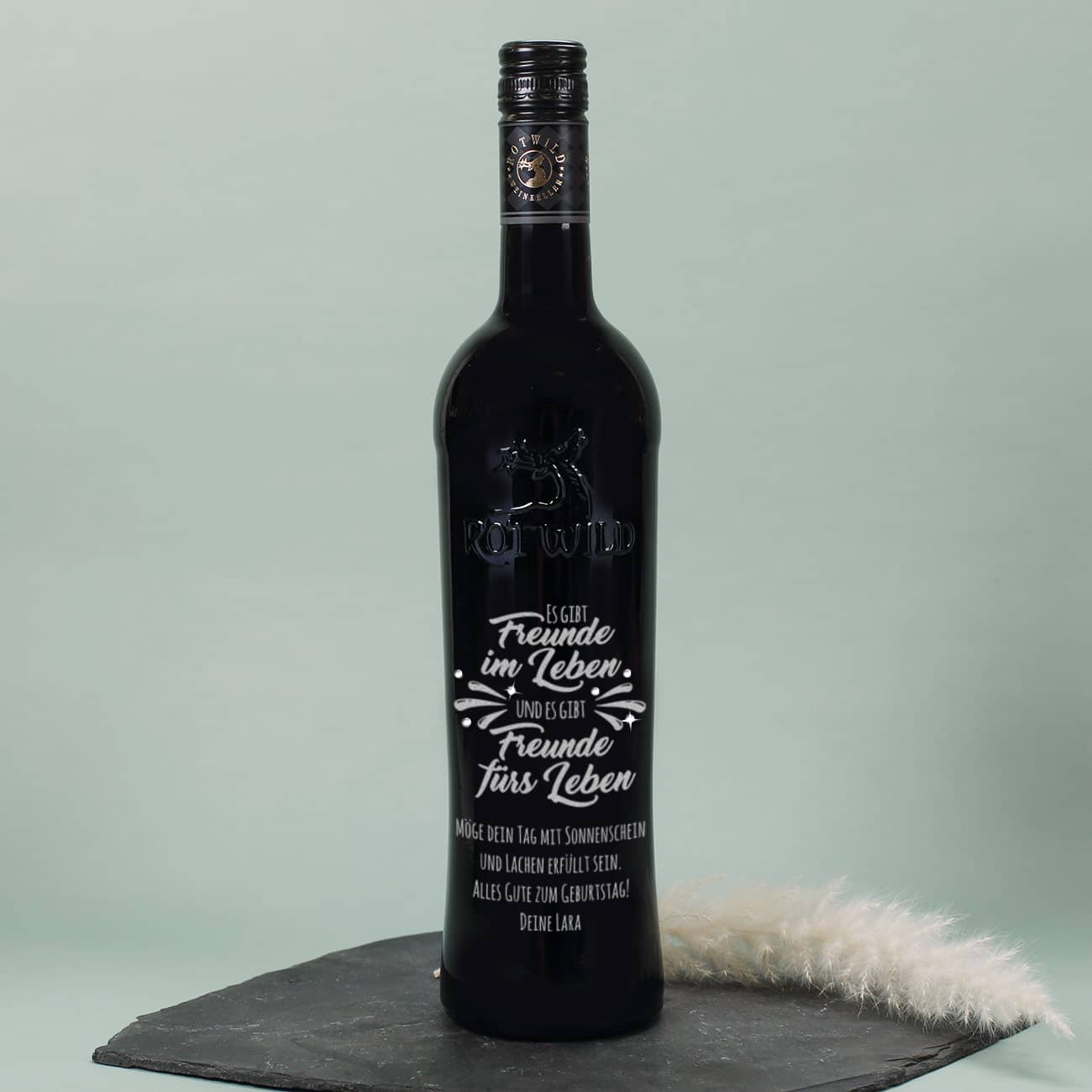 Es gibt Freunde im Leben und es gibt Freunde fürs Leben - Gravierte Weinflasche mit Wunschtext