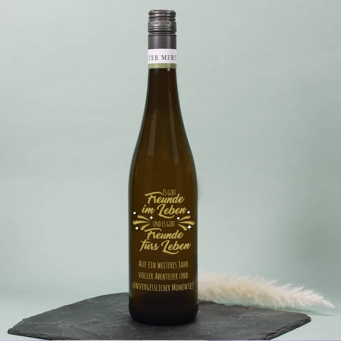 Gravierte Weinflasche in gold oder silber