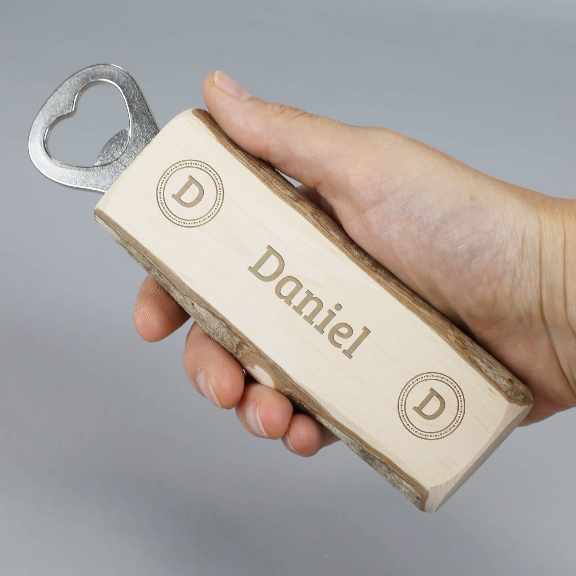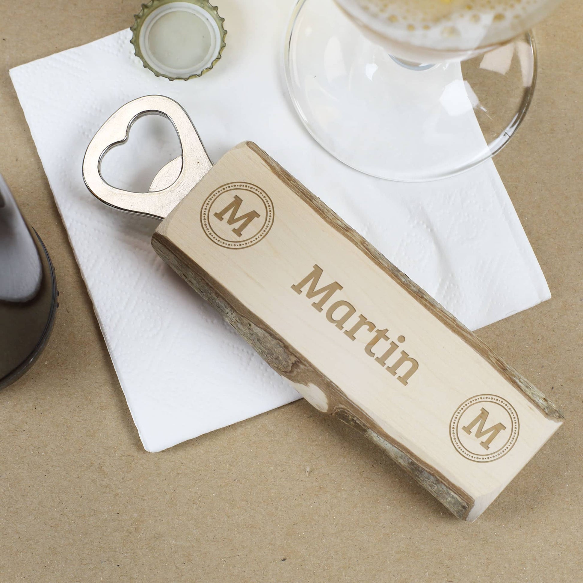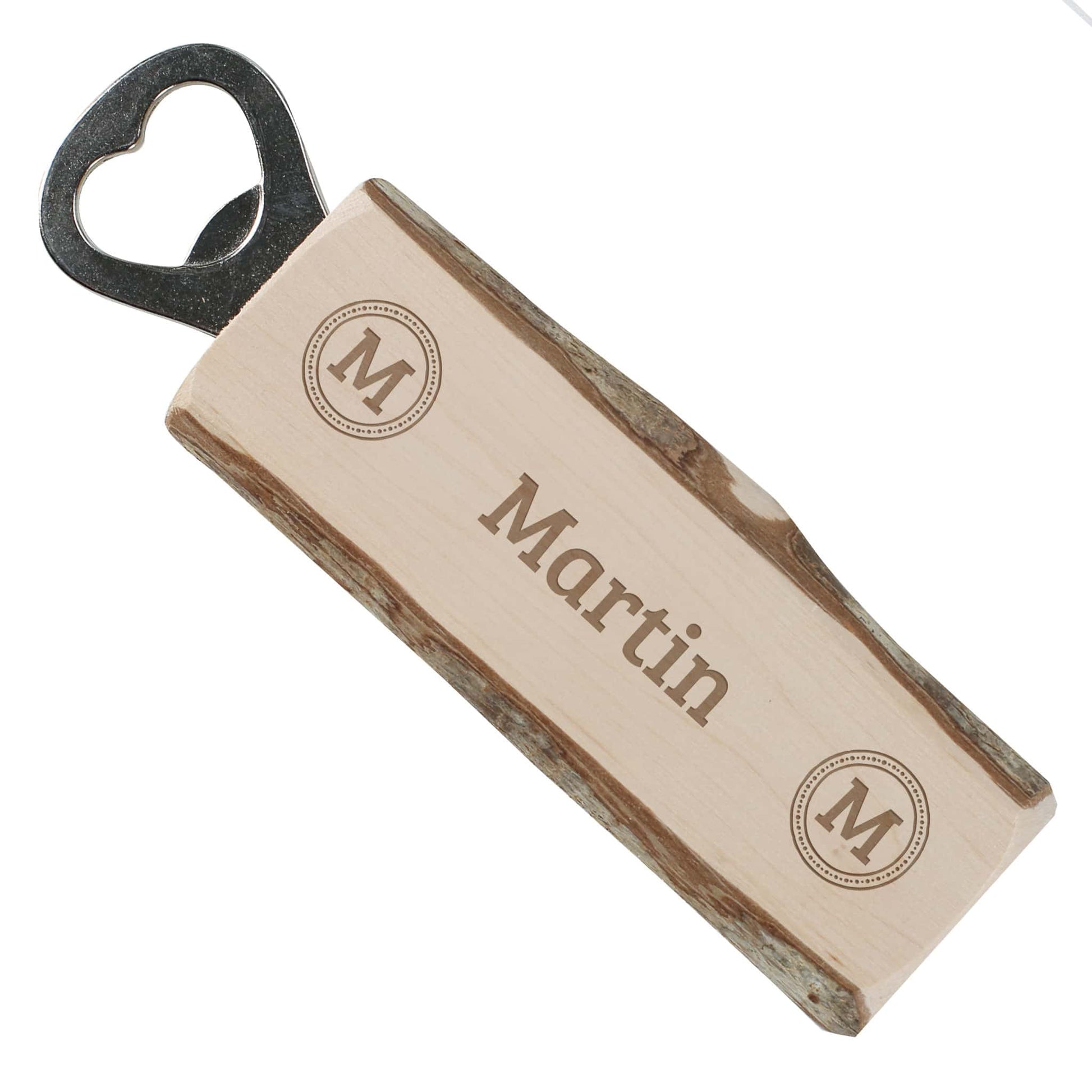 Personalisierter Flaschenöffner mit Rinde