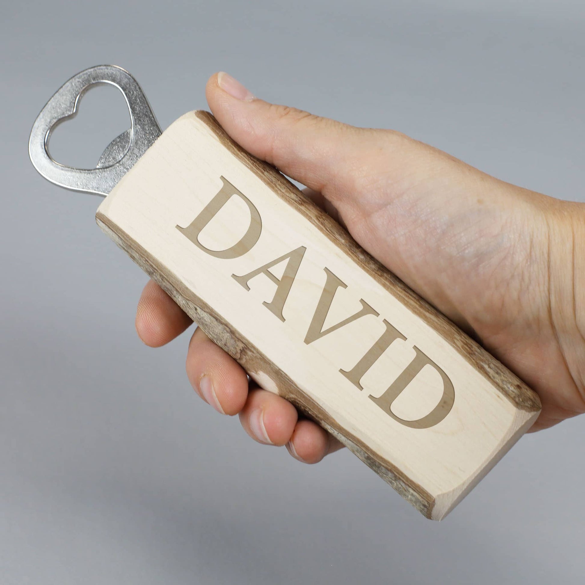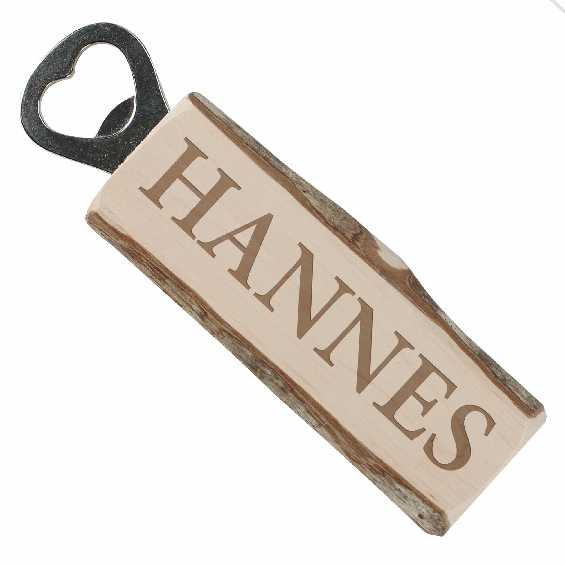 Flaschenöffner mit Rinde mit Ihrem Wunschnamen
