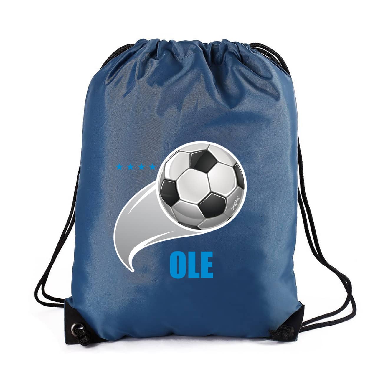 Dunkelblauer Schul-Sportbeutel für Fußballer mit Ihrem Namen gestaltet