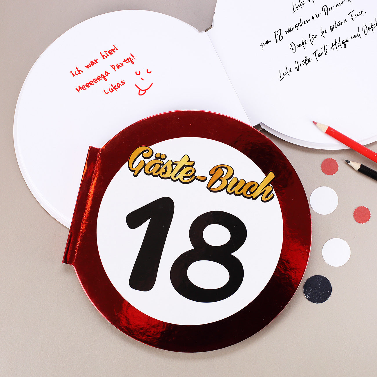 Mit diesem Gästebuch zum 18. Geburtstag haben Sie eine tolle kleine Beschäftigung für Ihre Gäste, die auch noch unvergessliche Momente festhält. Das Gästebuch sieht aus wie ein Verkehrsschild mit einer großen 18, welches weiße Seiten für das Beschriften beinhaltet. Hier können Ihre Partygäste Bilder reinkleben, Zeichnungen malen oder ein paar liebe Worte reinschreiben. Egal ob witzige Momente oder schöne Erlebnisse - hier kann alles zum 18. Geburtstag verfasst werden. Mit solchen Dekorationen zum 18. Geburtstag wird die Volljährigkeit noch besser und bleibt lange in Erinnerung!