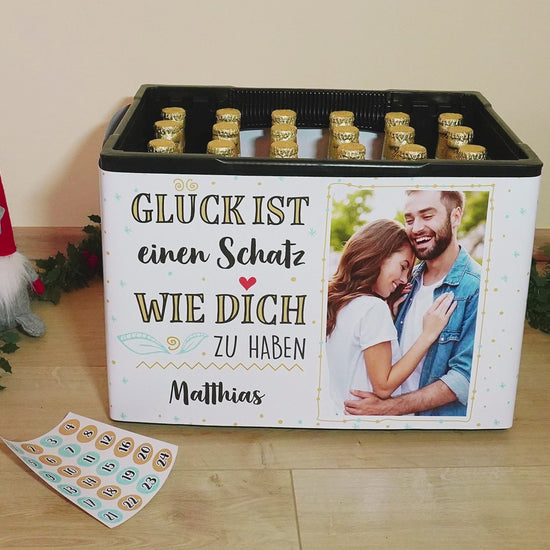 DIY Adventskalender Bierkasten mit Glück ist... Spruch und Ihrem Foto
