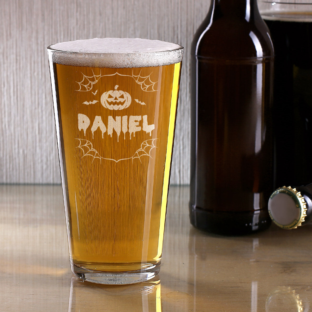 Dieses gravierte Halloween-Glas sorgt garantiert für schaurig-schöne Stimmung bei jeder Party! Mit seinem aufwendig gravierten Kürbis- und Spinnennetzmotiv ist es das perfekte Trinkglas für Cocktails, Bier oder Softdrinks – ob für die Halloweenparty, als Geschenk oder für den eigenen Gruseltisch.
