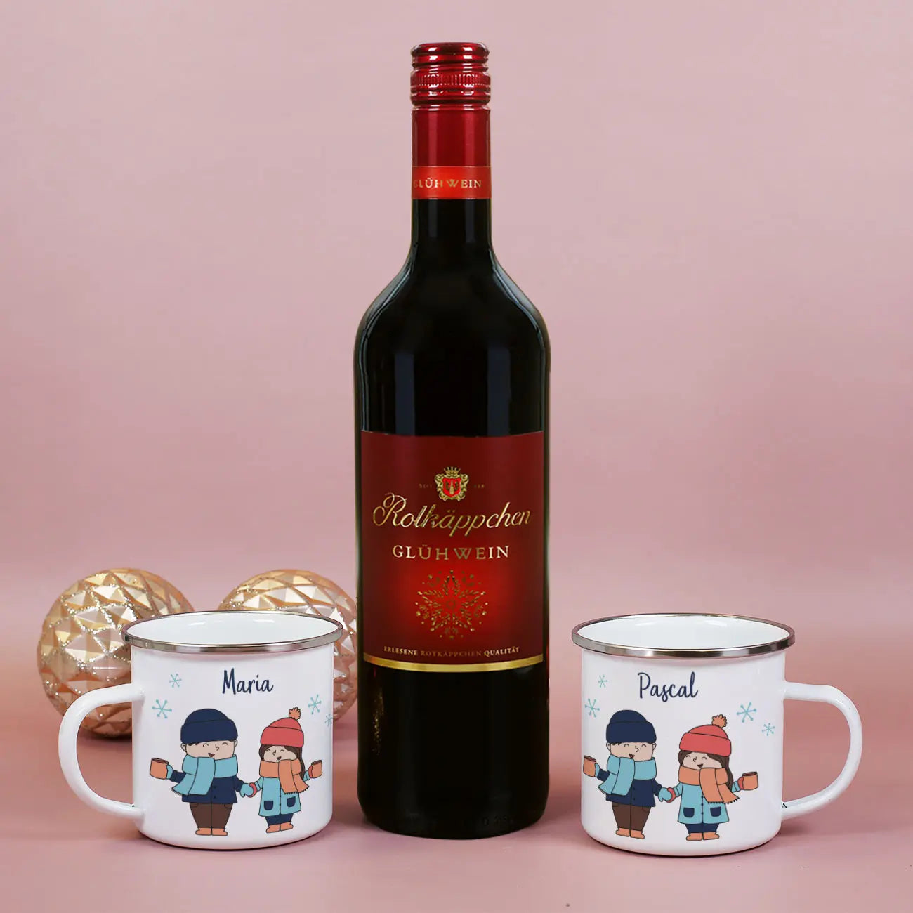 Verschenken Sie mit diesem Geschenkset aus Glühwein, zwei Tassen aus Emaille und einer individuellen Geschenkbox einen heißen Wintergenuss! Besonders im Dezember darf ein duftender und kräftiger Glühwein auf keinen Fall fehlen, um sich in die richtige Weihnachtsstimmung zu bringen. Nicht nur auf dem Weihnachtsmarkt wird dieser genossen, sondern auch auf der Terrasse, dem Garten oder den Balkon mit dem Partner oder der Partnerin. Aus diesem Grund ist dieses Geschenkset das ideale Weihnachtsgeschenk für Pärchen - hier kriegt jeder seine eigene Glühweintasse zum Genießen des Heißgetränks. Als Paar kann mit diesem Geschenkset zu Weihnachten eine schöne neue Weihnachtstradition eingeführt werden!