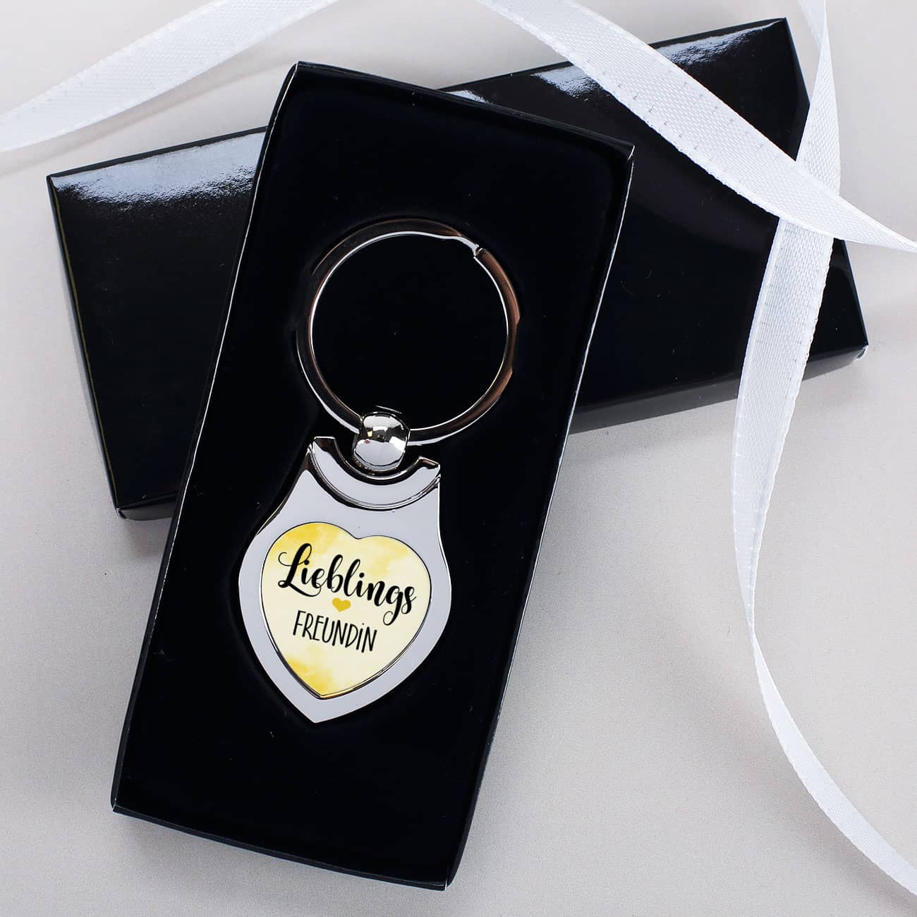 Der herzförmige Anhänger ist eine schöne Geschenkidee für Ihren liebsten Menschen. Er wird mit einem gelben Herzen und der Aufschrift "Lieblings" bedruckt. Ihr Wunschtext macht das Motiv perfekt. So können Sie ein Geschenk für die Lieblingsfreundin, die Lieblingsschwester oder die Lieblingsmama - als persönliches Muttertagsgeschenk - erstellen!