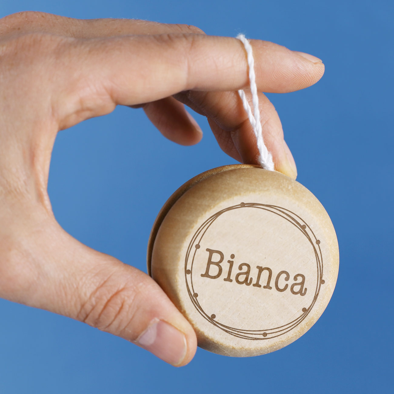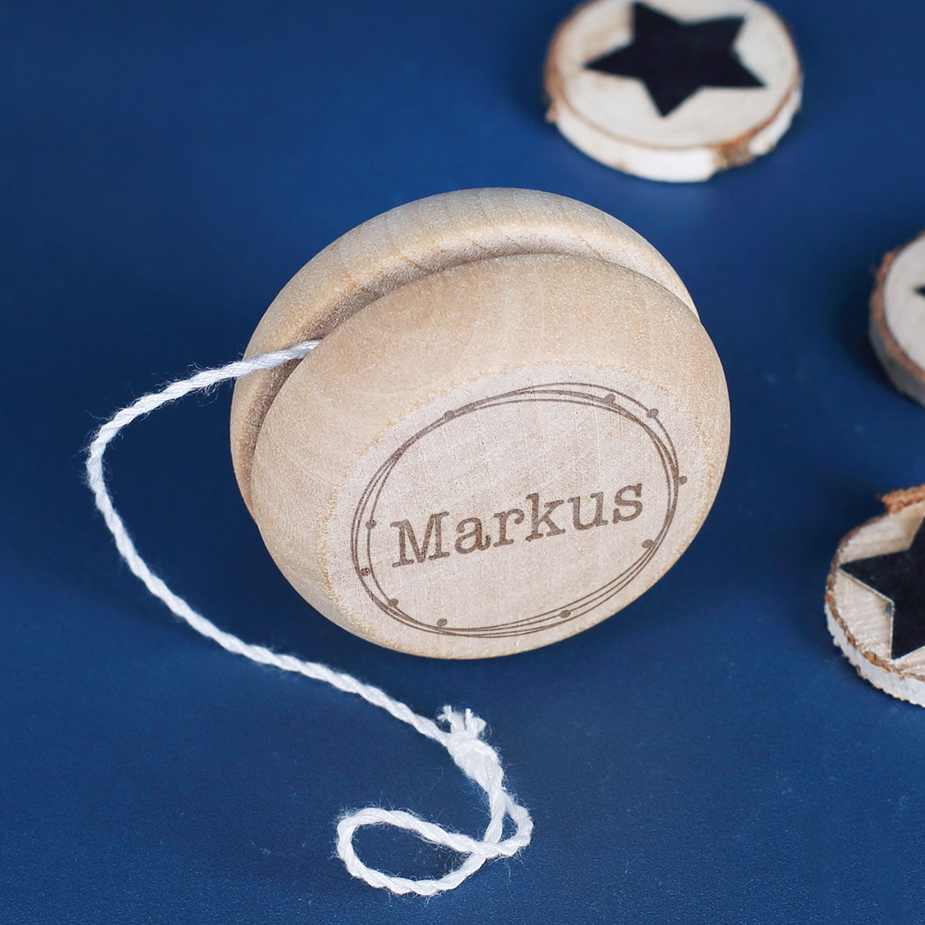 Entdecken Sie unser graviertes Jojo mit Namensgravur, ein edles und personalisiertes Spielzeug, das für lange Zeit Freude und Beschäftigung bietet. Ob für Kinder oder junge Erwachsene, die sich ihre kindliche Begeisterung bewahrt haben – dieses liebevoll gestaltete Jojo ist ein besonderes Highlight. Ein personalisiertes Spielzeug wie dieses sollte in keiner klassischen Sammlung fehlen und ist immer ein Hingucker. Überreichen Sie das Jojo als Geschenk zum Geburtstag, zu Ostern, Nikolaus und zu zahlreichen anderen Anlässen!