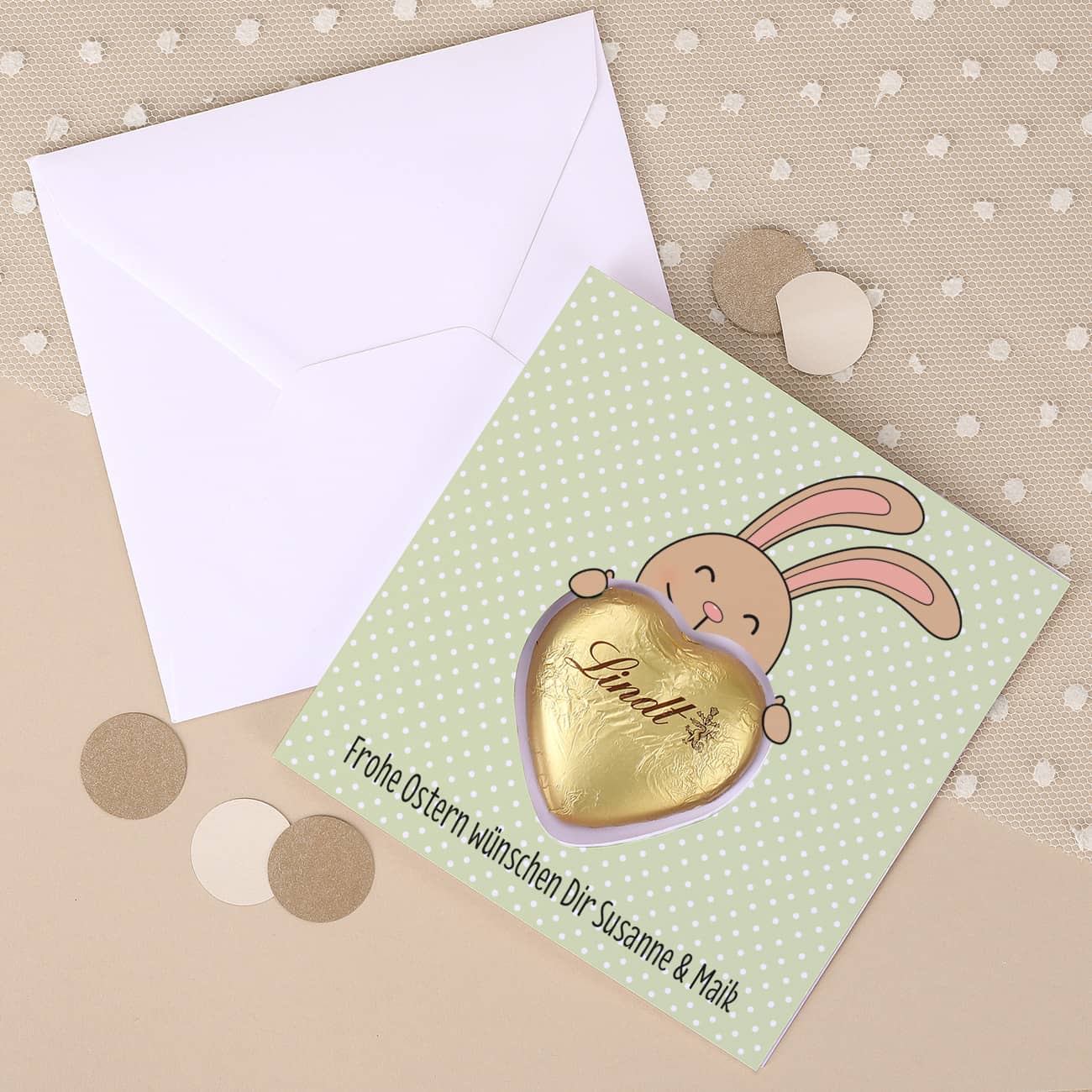 Persönliche Osterkarte mit Schokoladenherz von Lindt