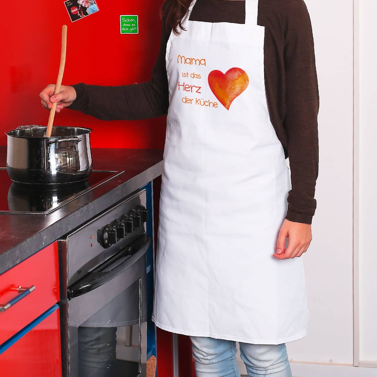 Ob Muttertag, Weihnachten oder Geburtstag - beschenken Sie Ihr persönliches Herz der Küche doch mit dieser praktischen Kochschürze!