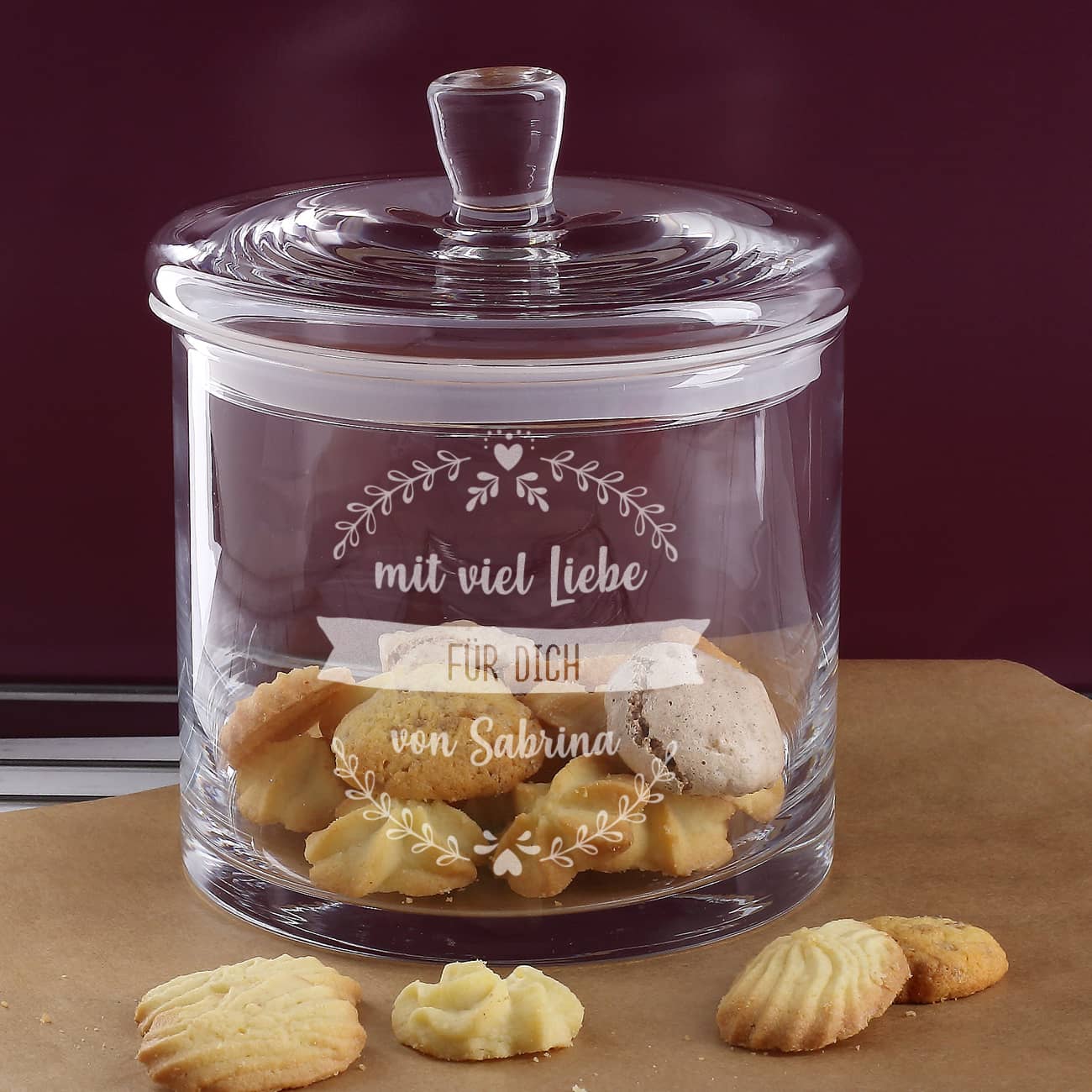 Ob mit den Lieblingssüßigkeiten, Nüssen oder Plätzchen gefüllt, machen Sie Ihren Liebsten mit dieser gravierten Glasdose eine tolle Freude.
