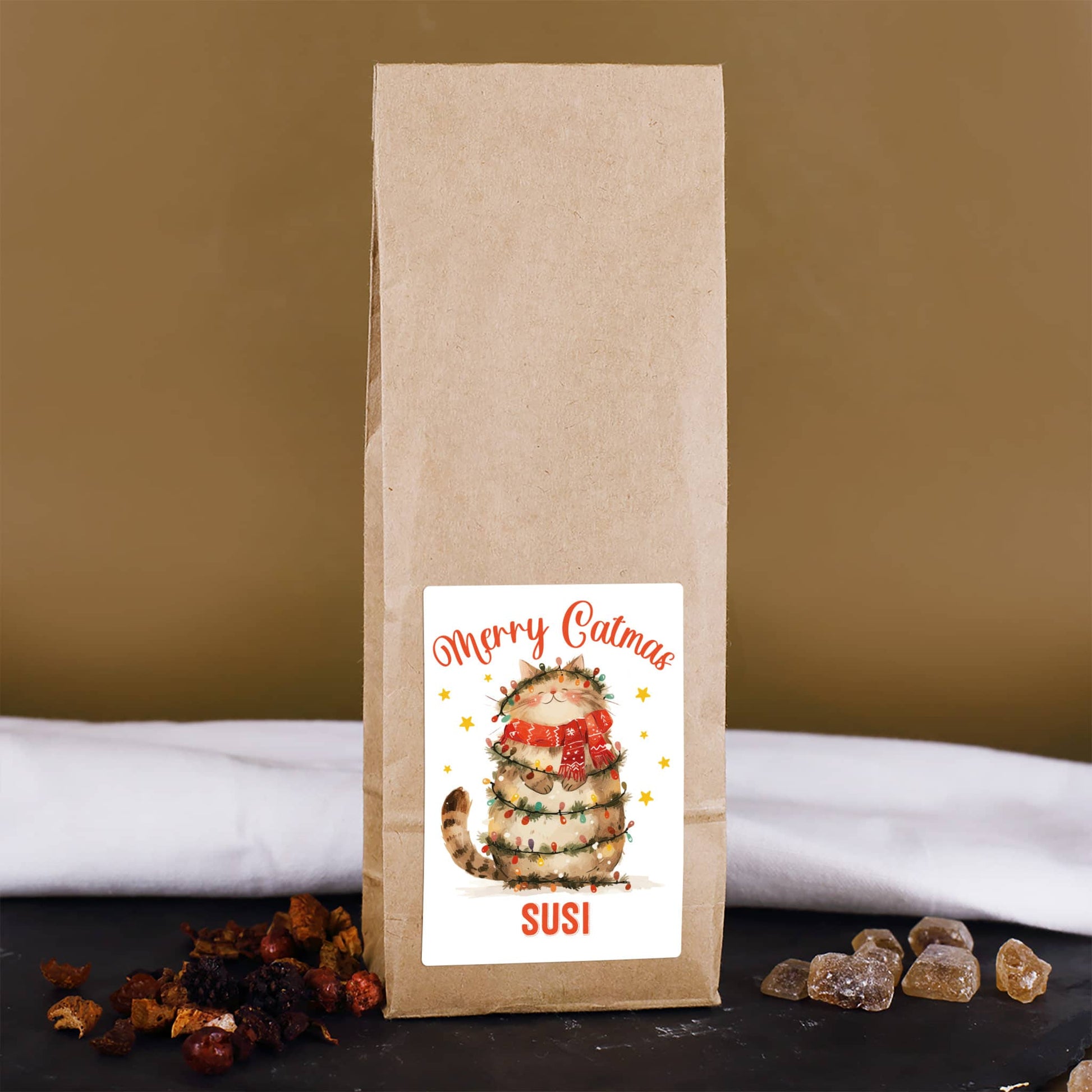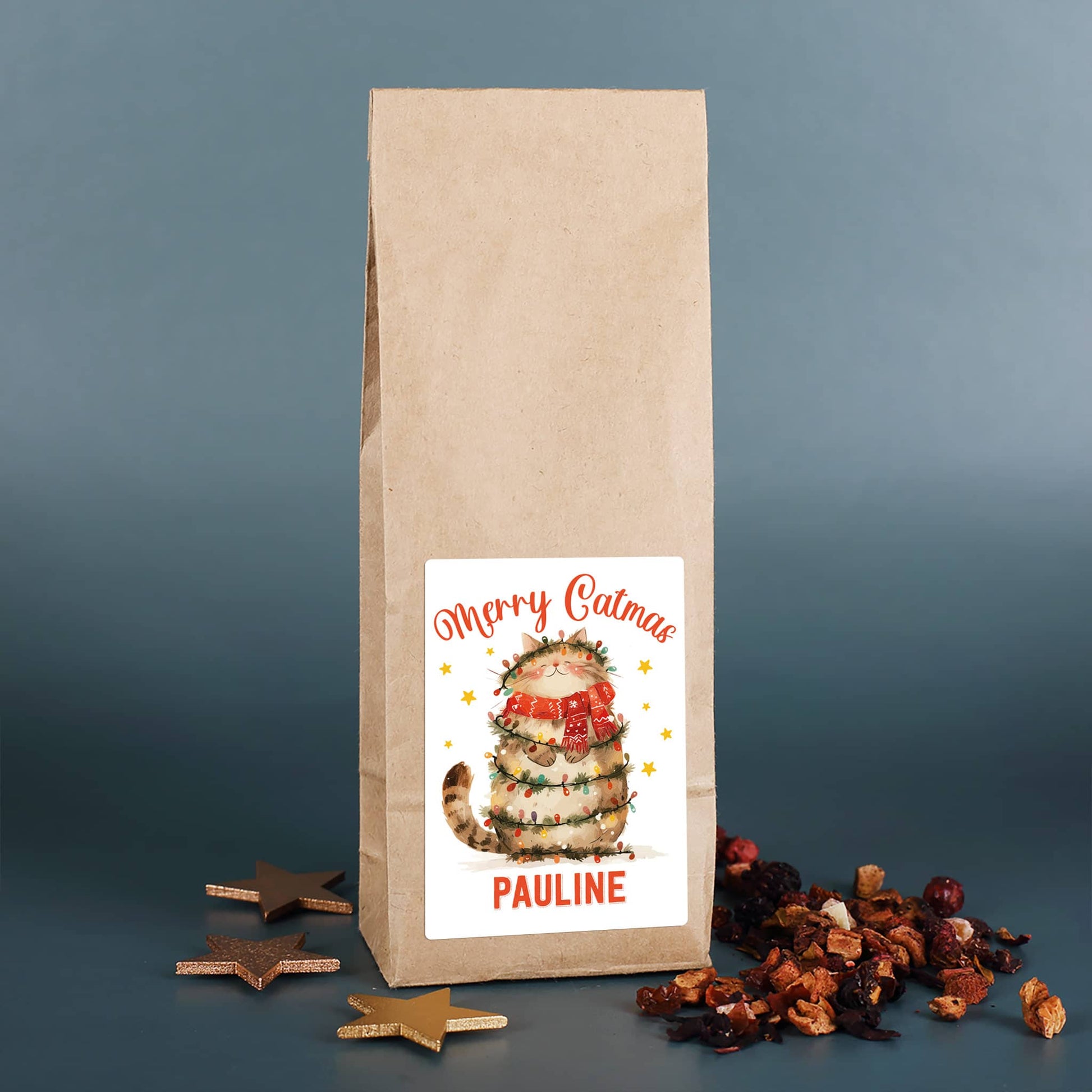 Merry Catmas - Früchtetee mit weihnachtlichem Katzenmotiv und Name