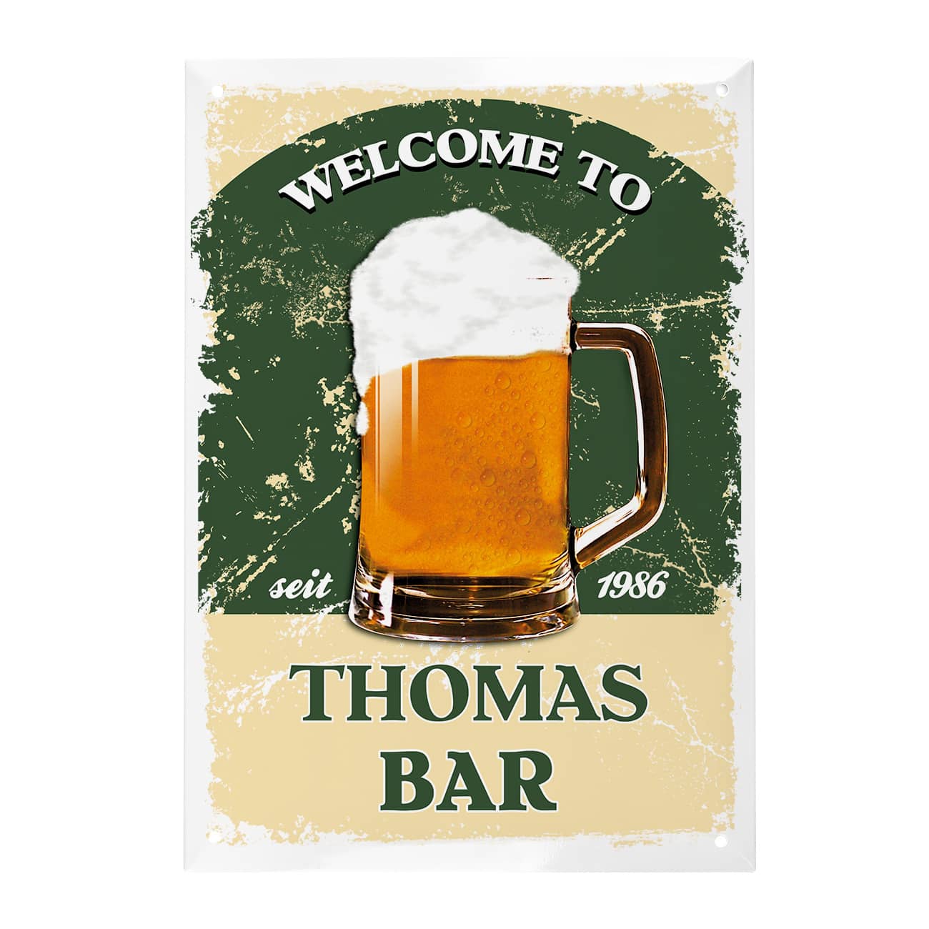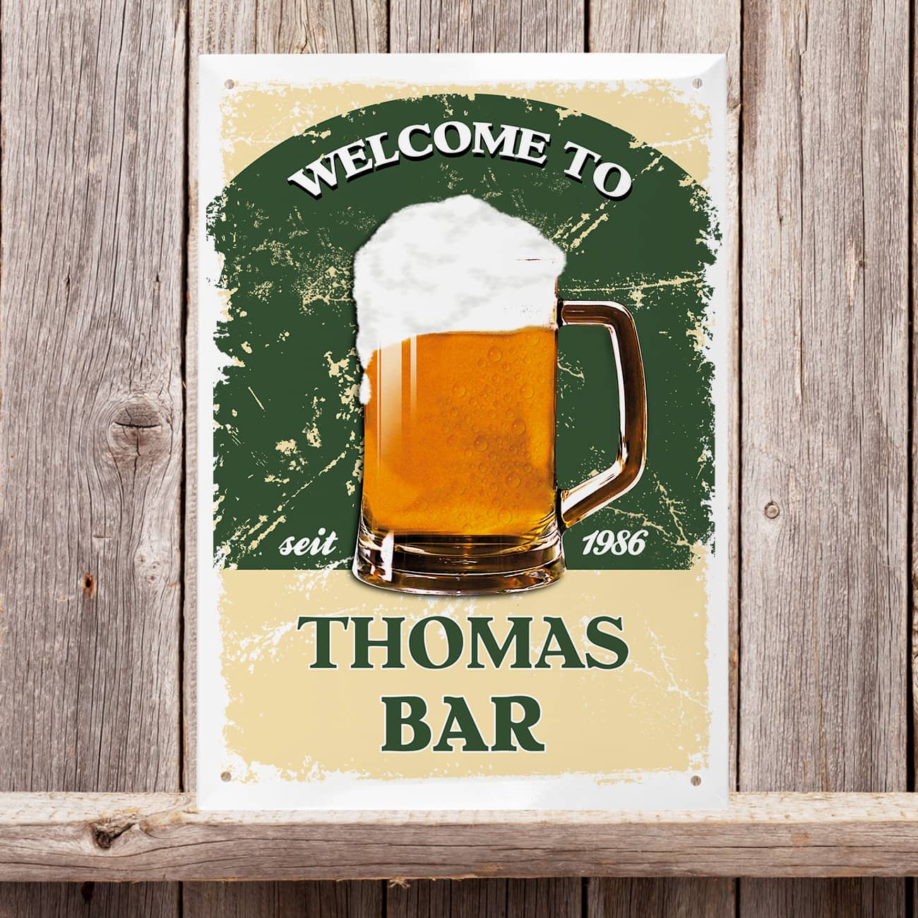 Barschild mit Nostalgie-Motiv und Wunschnamen