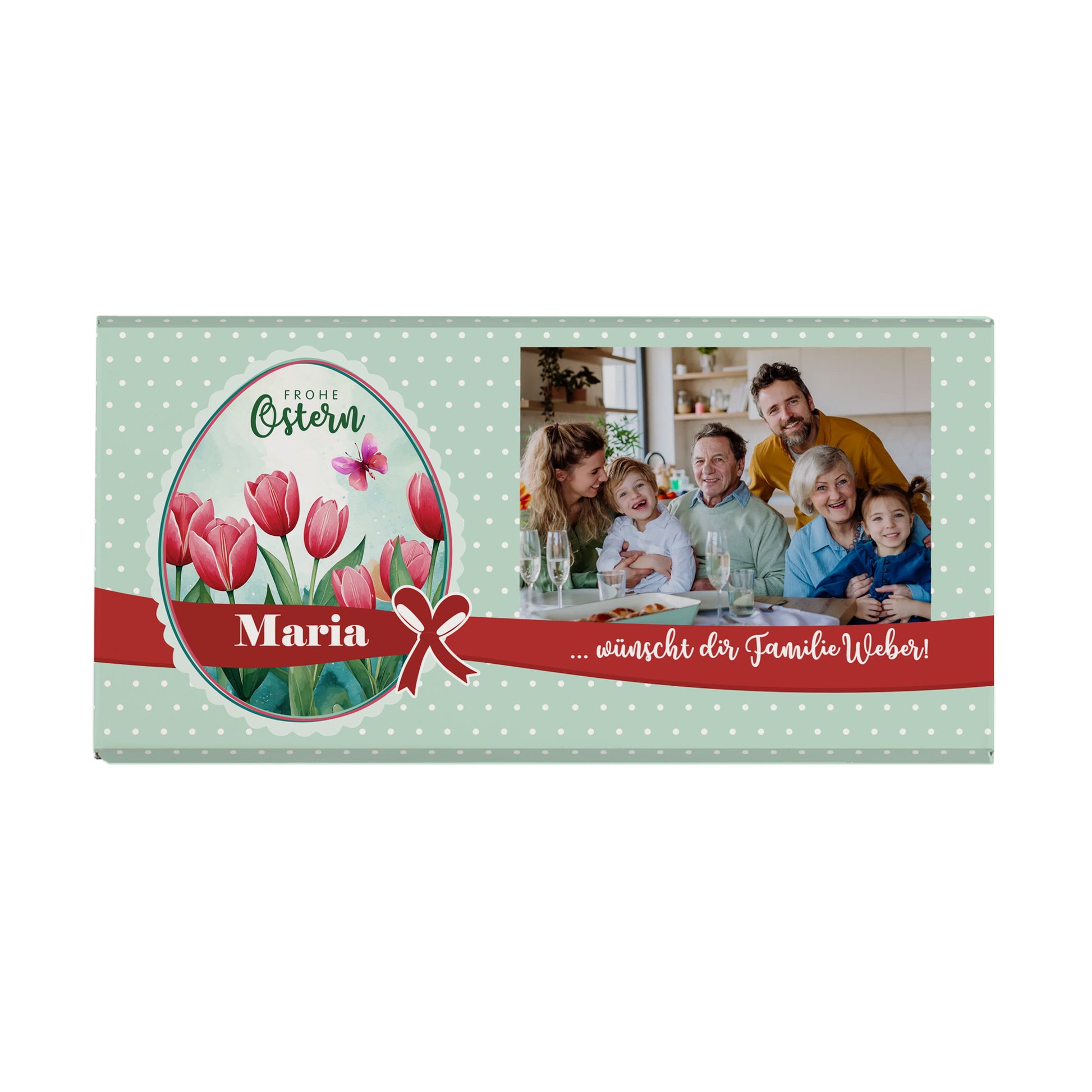 Osterschokolade mit Foto, Wunschtext & Name | Tulpenmotiv