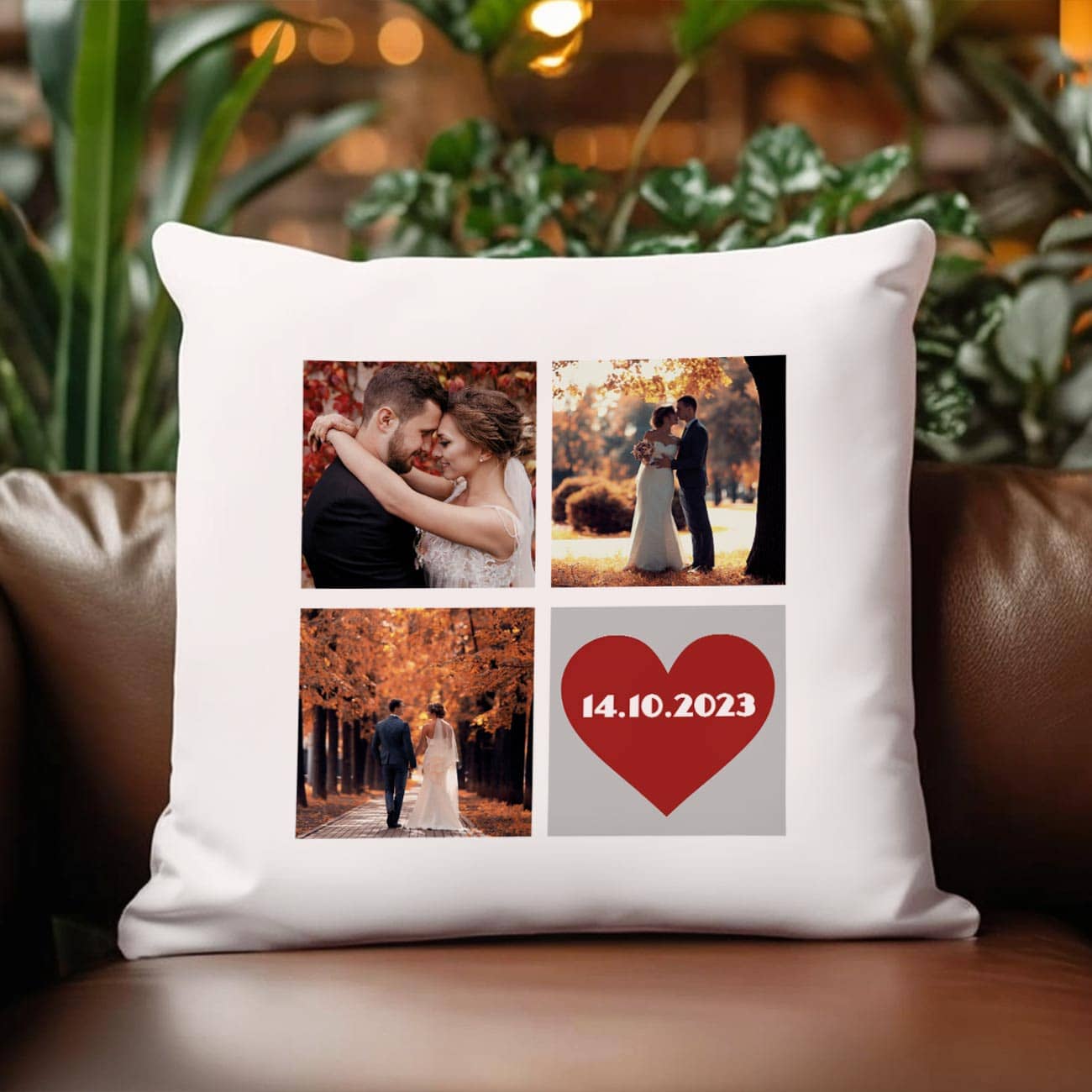 Ein persönliches Fotokissen als Geschenk? Das wäre mal etwas ganz Neues. Personalisiert obendrein, schenken Sie damit ein tolles Präsent von bleibendem Wert. Gestalten Sie sich hier Ihr ganz persönliches Fotokissen aus drei Ihrer schönsten Bilder und einem kurzen Text aus maximal 40 Zeichen. Es ist eine tolle Geschenkidee zur Hochzeit, zum Hochzeitstag, Valentinstag, Muttertag oder einem anderen besonderen Anlass.