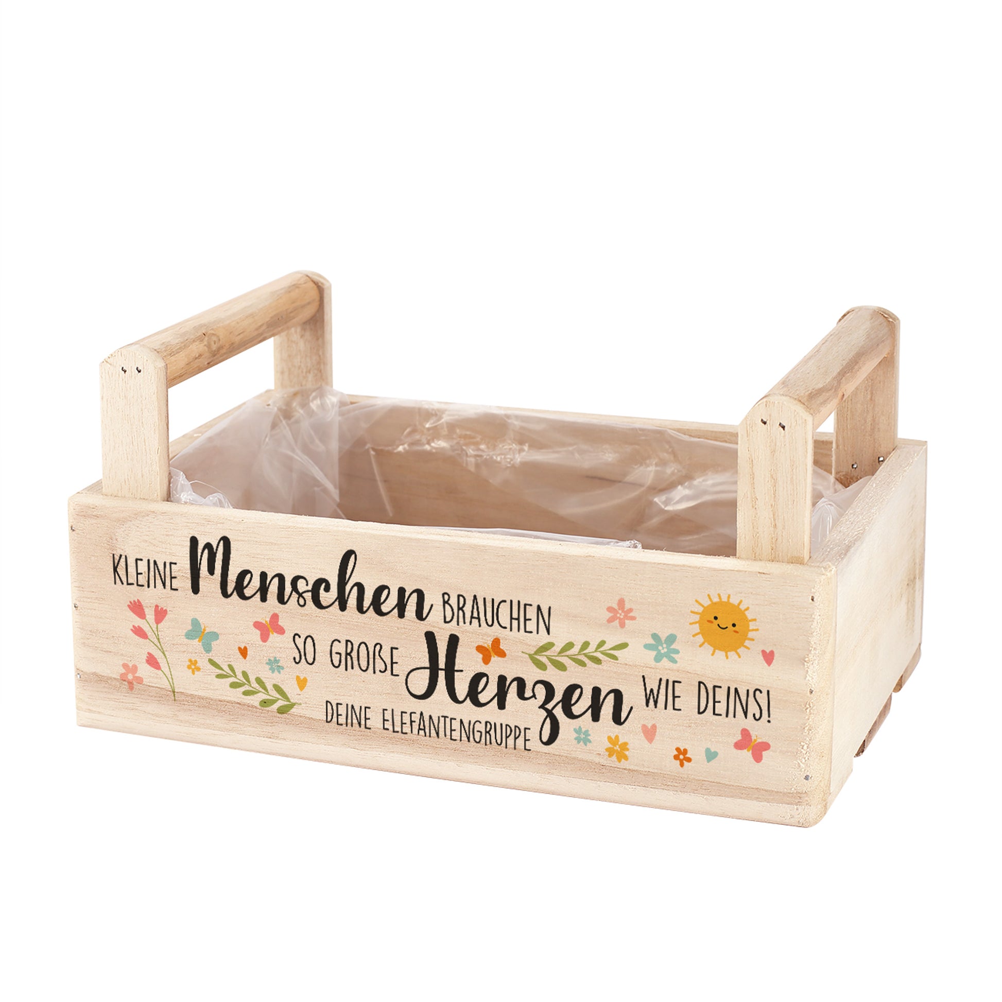 Diese liebevoll gestaltete Pflanzkiste aus Holz ist das perfekte Abschiedsgeschenk für Erzieher, Lehrer oder Betreuer. Mit dem farbenfrohen Motiv aus Blumen, Schmetterlingen, Sonne und Herzen sowie einer individuellen Personalisierung wird sie zu einer besonderen Erinnerung.