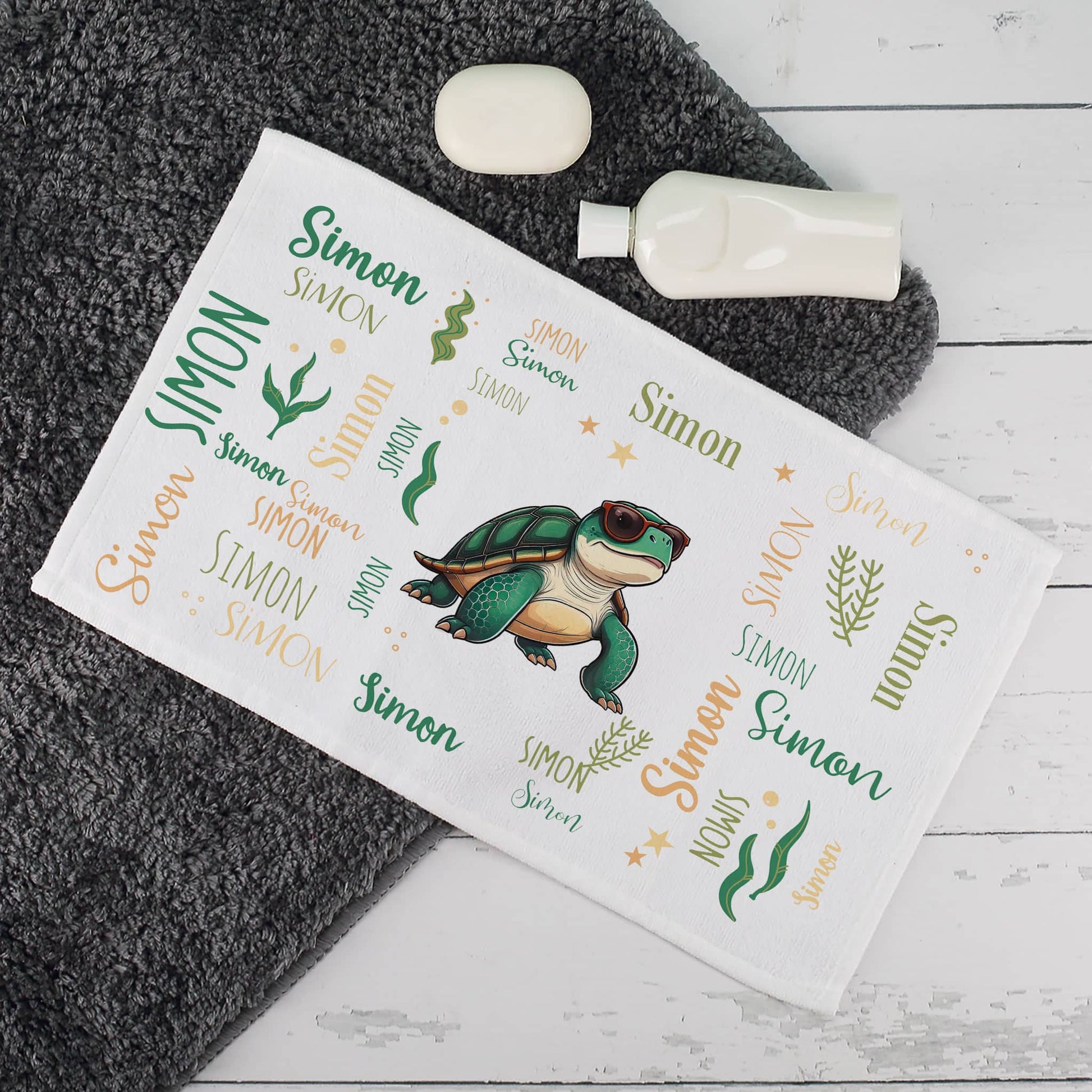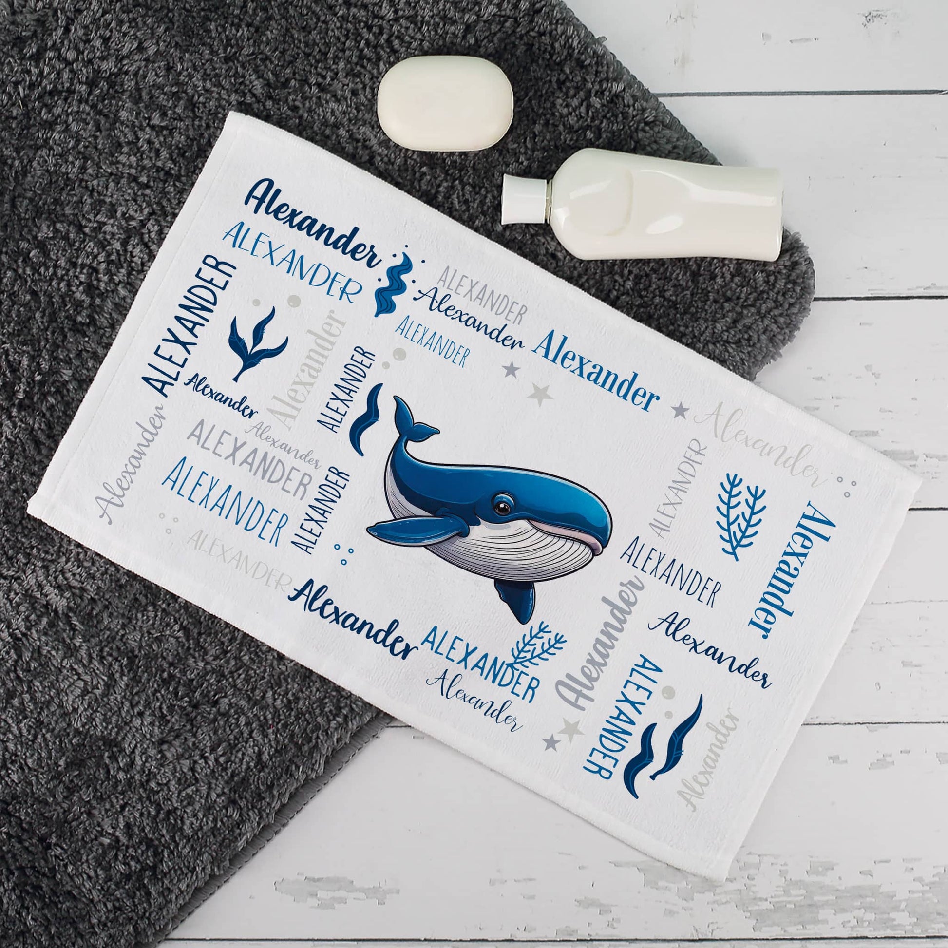 Personalisiertes Handtuch mit coolem Meerestier-Motiv und Namen