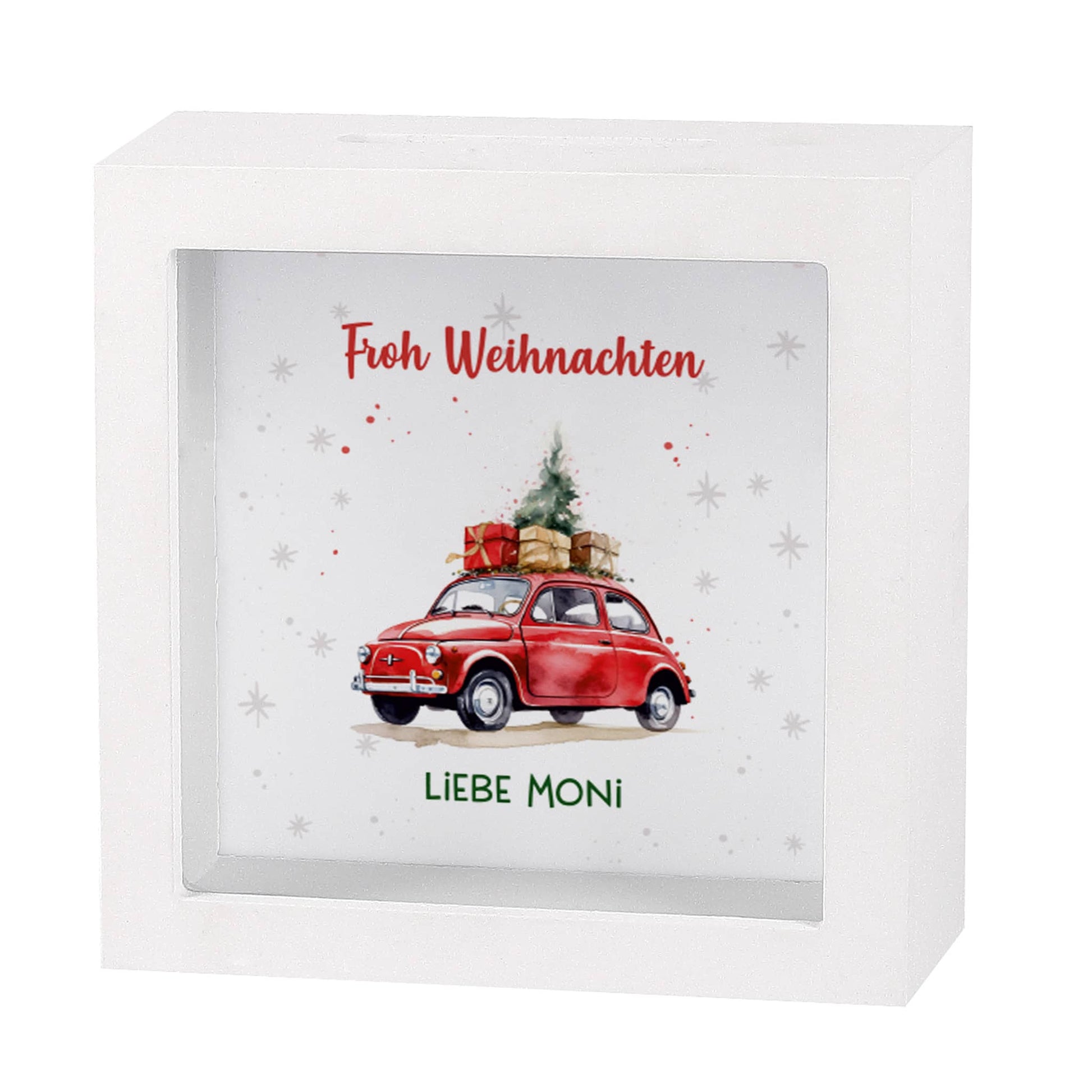 Personalisierte Bilderrahmenspardose als weihnachtliches Geldgeschenk