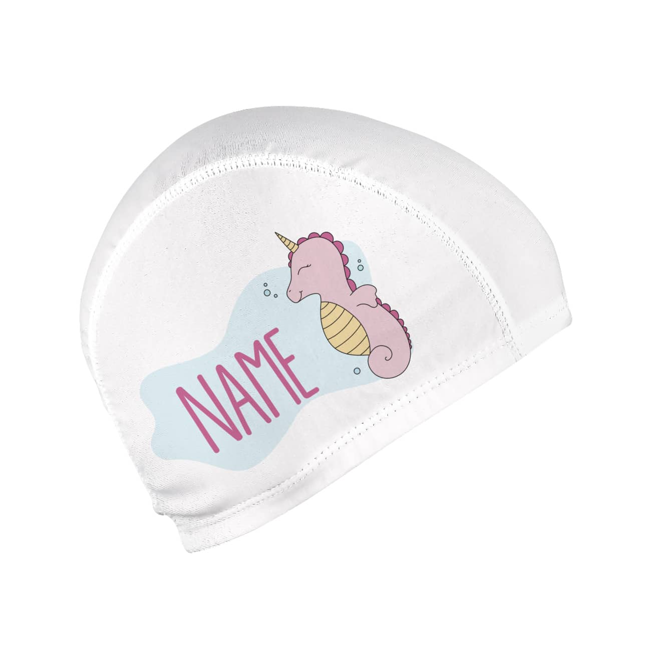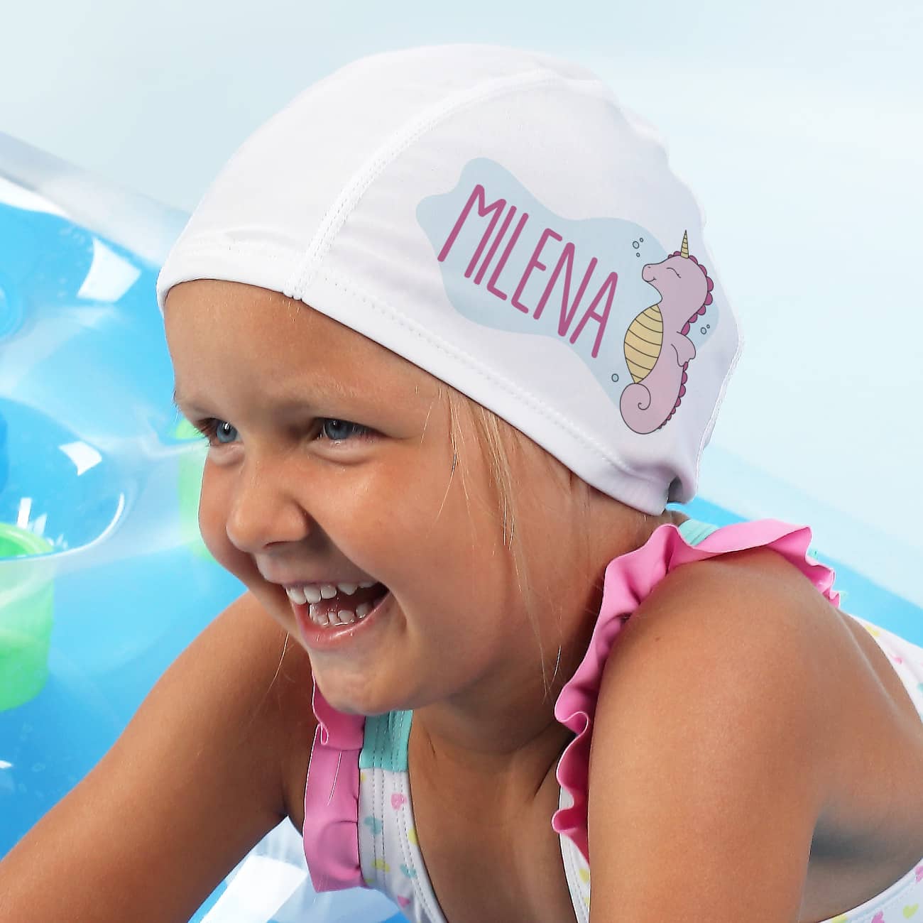 Badekappe mit Seepferdchen und Wunschname