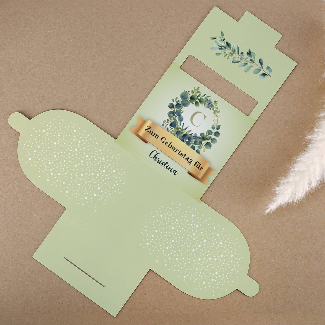 Mit Tassentasche im Eukalyptusdesign als Geschenk-Verpackung