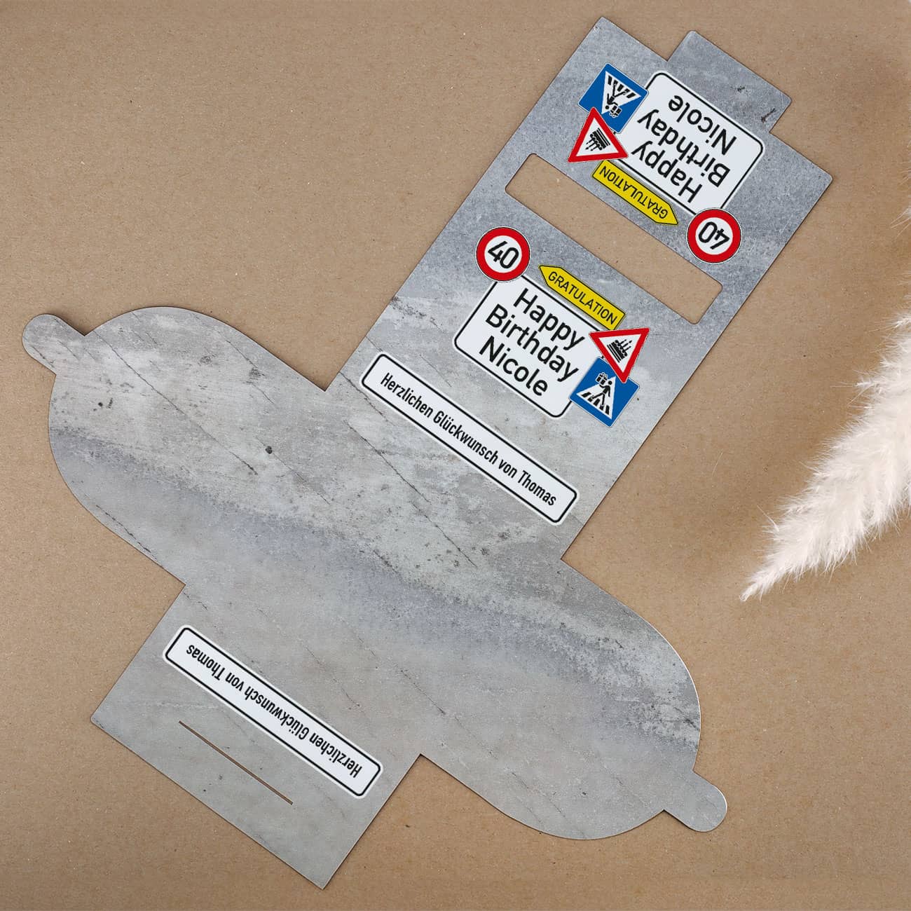 Die Kombination aus einer personalisierten Tasse und einer thematisch passenden Tassentasche mit Verkehrszeichen-Motiv macht dieses Set zu einem einzigartigen und humorvollen Geburtstagsgeschenk. Es ist nicht nur praktisch, sondern sorgt auch für einen Lacher beim Auspacken.