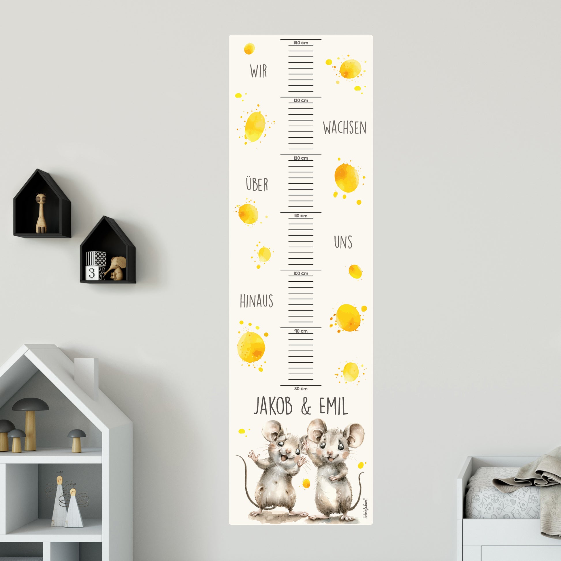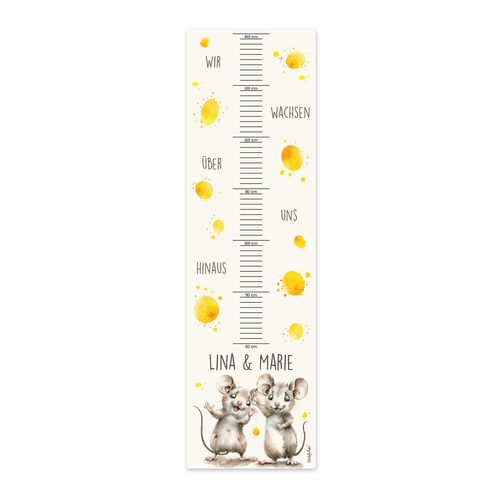Personalisierte Messlatte mit Mäuse-Zwillingen – „Wir wachsen über uns hinaus“ 🐭📏