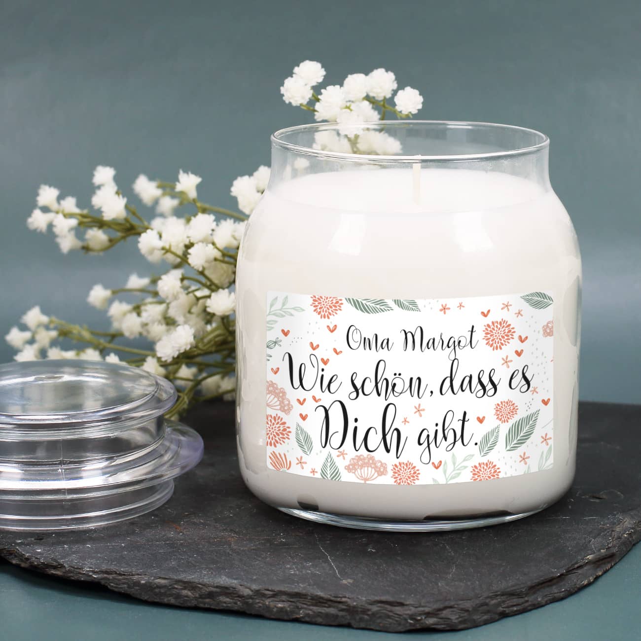 Duftkerze im Deckelglas als Dankeschön mit Name personalisiert