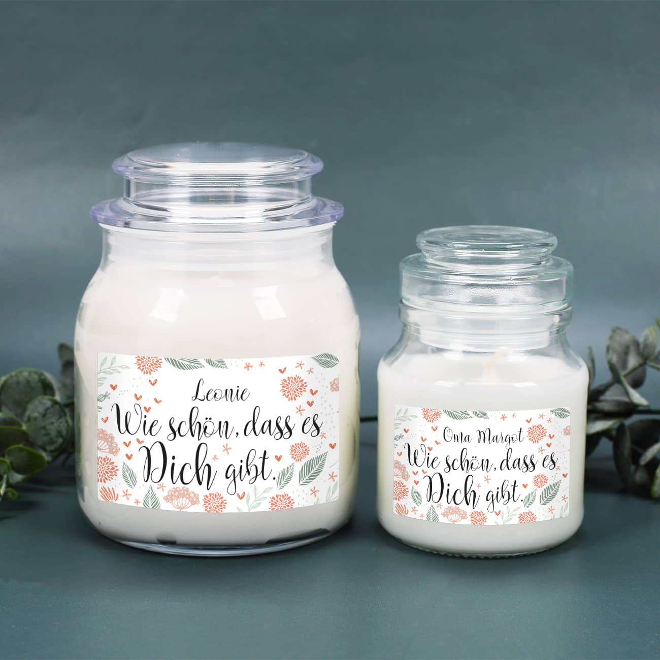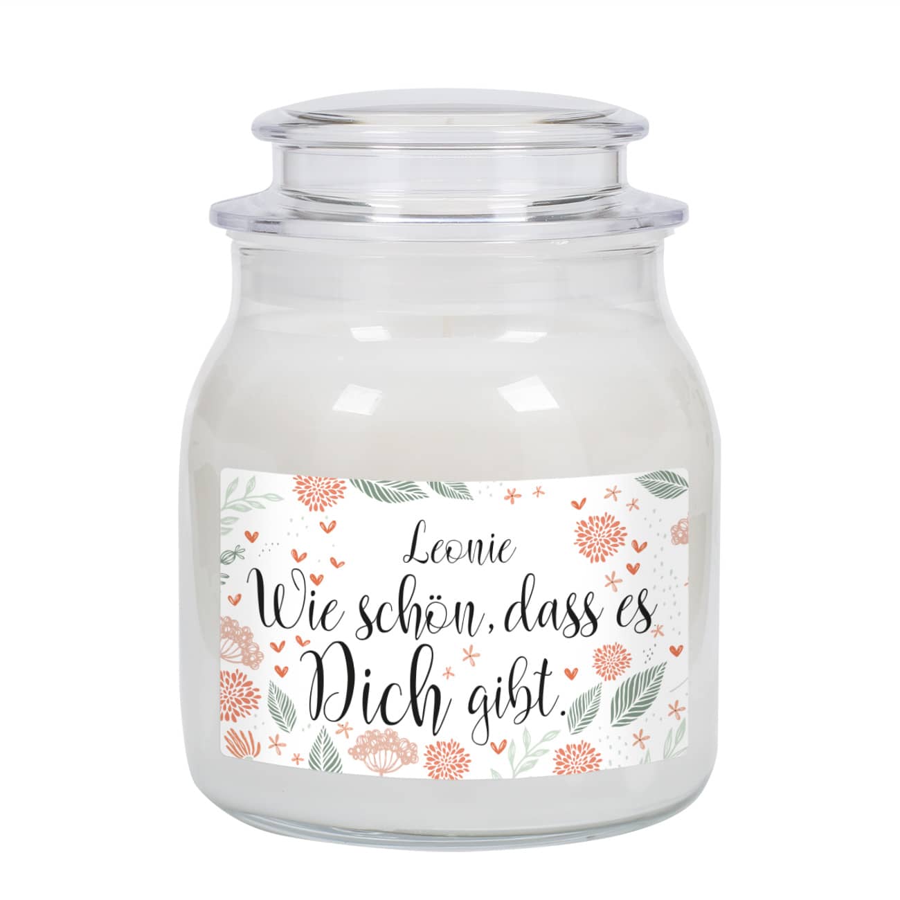 Ob als kleines Dankeschön, als Zugabe zum Geburtstagsgeschenk oder um einfach mal wieder zu zeigen, wie schön es ist, dass es diese eine Person in Ihrem Leben gibt. Diese kleine Duftkerze im robusten Deckelglas ist ein tolles Geschenk zu all diesen Anlässen, an denen Sie Ihre Liebsten glücklich machen möchten. Das Kerzenglas der Duftkerze erhält ein personalisiertes Etikett mit dem Spruch "Wie schön, dass es dich gibt" und ein Name nach Wunsch. Umrahmt wird das Ganze von Herzen, Blättern und Blüten. Ein tolles Geburtstagsgeschenk, Muttertagsgeschenk oder Dankeschön Geschenk zwischendurch. Machen Sie Ihrer Mama, Kollegin, besten Freundin oder auch wem ganz anders hiermit eine große Freude! Personalisierte Geschenke kommen schließlich immer wunderbar an.